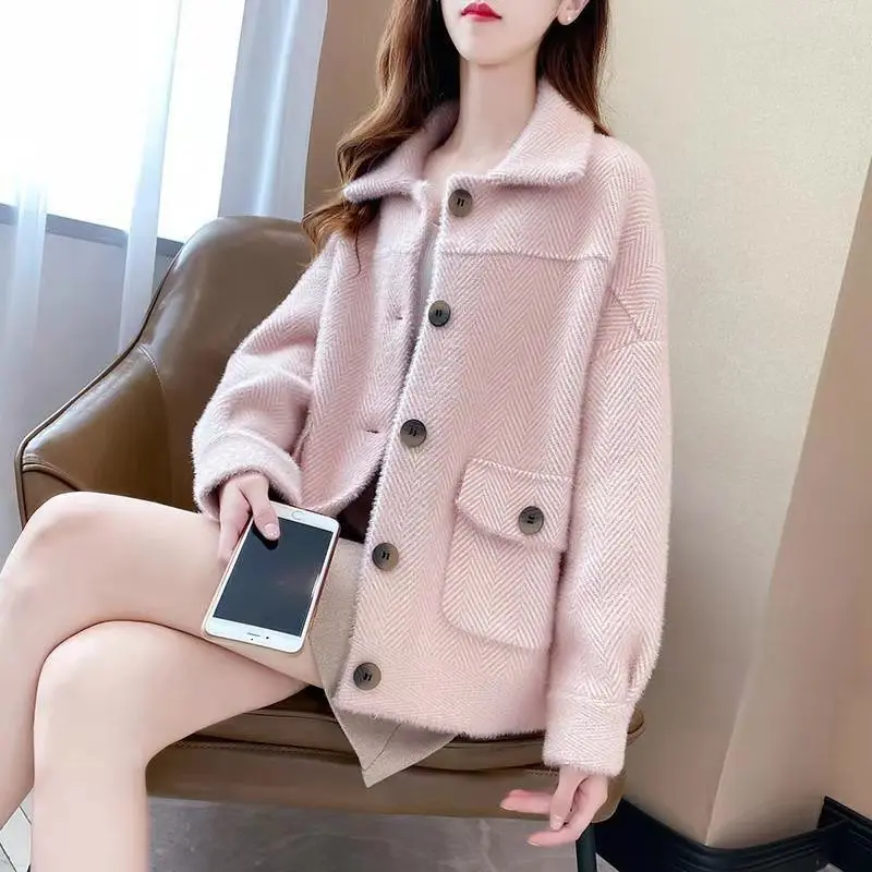 Пальто, зимняя одежда для женщин, новинка сезона осень 2022, модная короткая куртка из искусственной норки на флисе, Корейская женская тонкая вязаная куртка