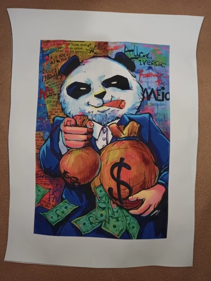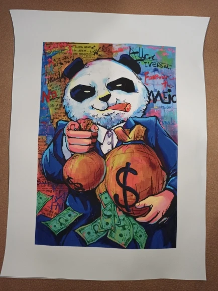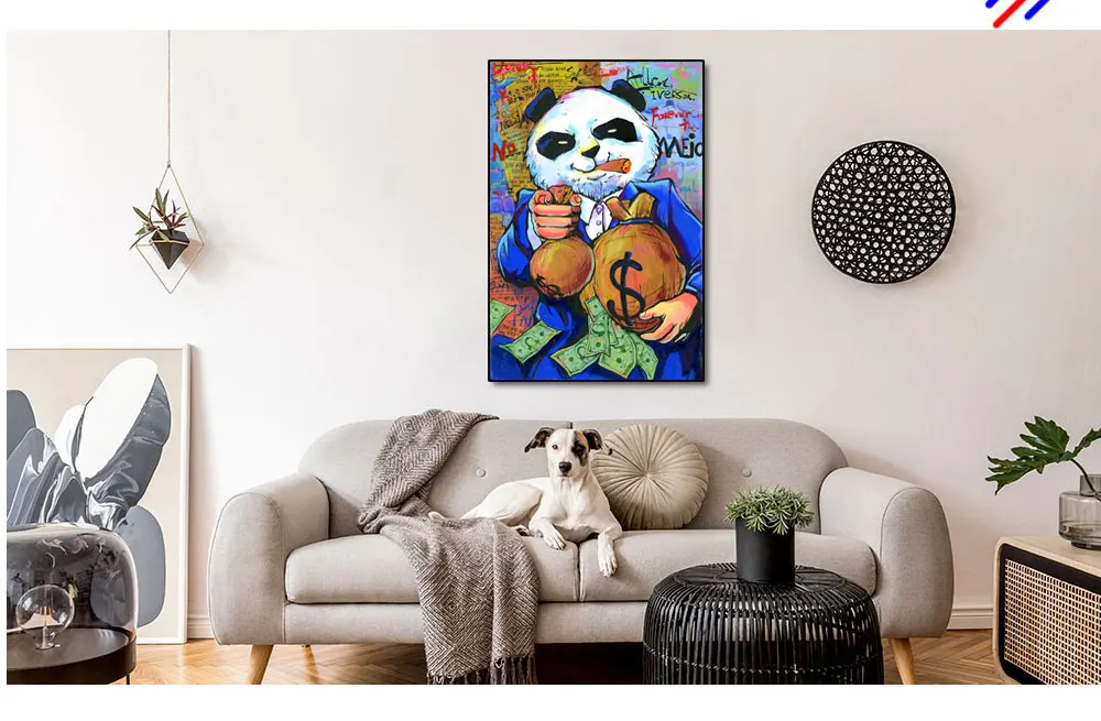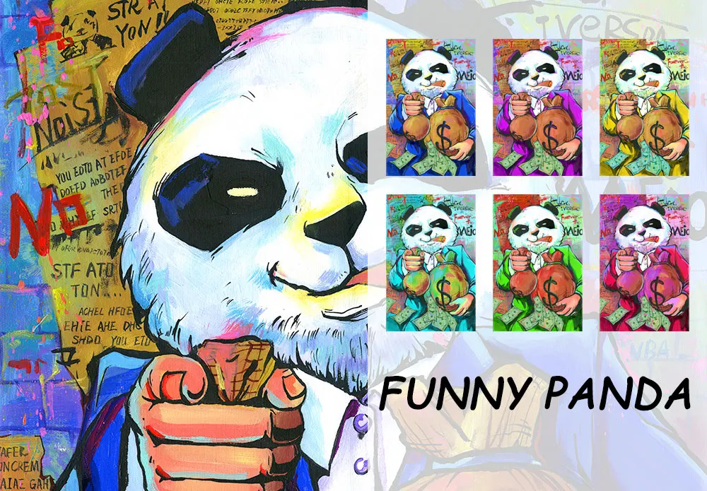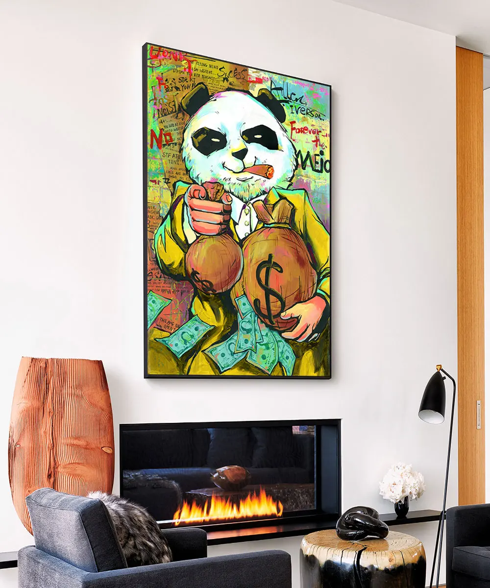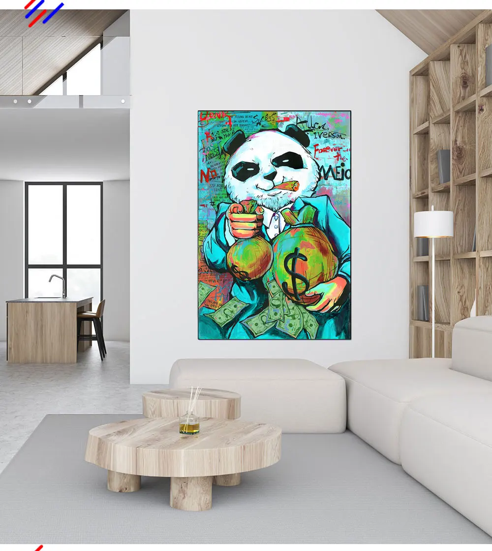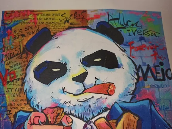Зеленый фиолетовый панда смешное лицо курение картина денежный мешок холст живопись Мотивационная улица настенный художественный плакат Декор для комнаты дома