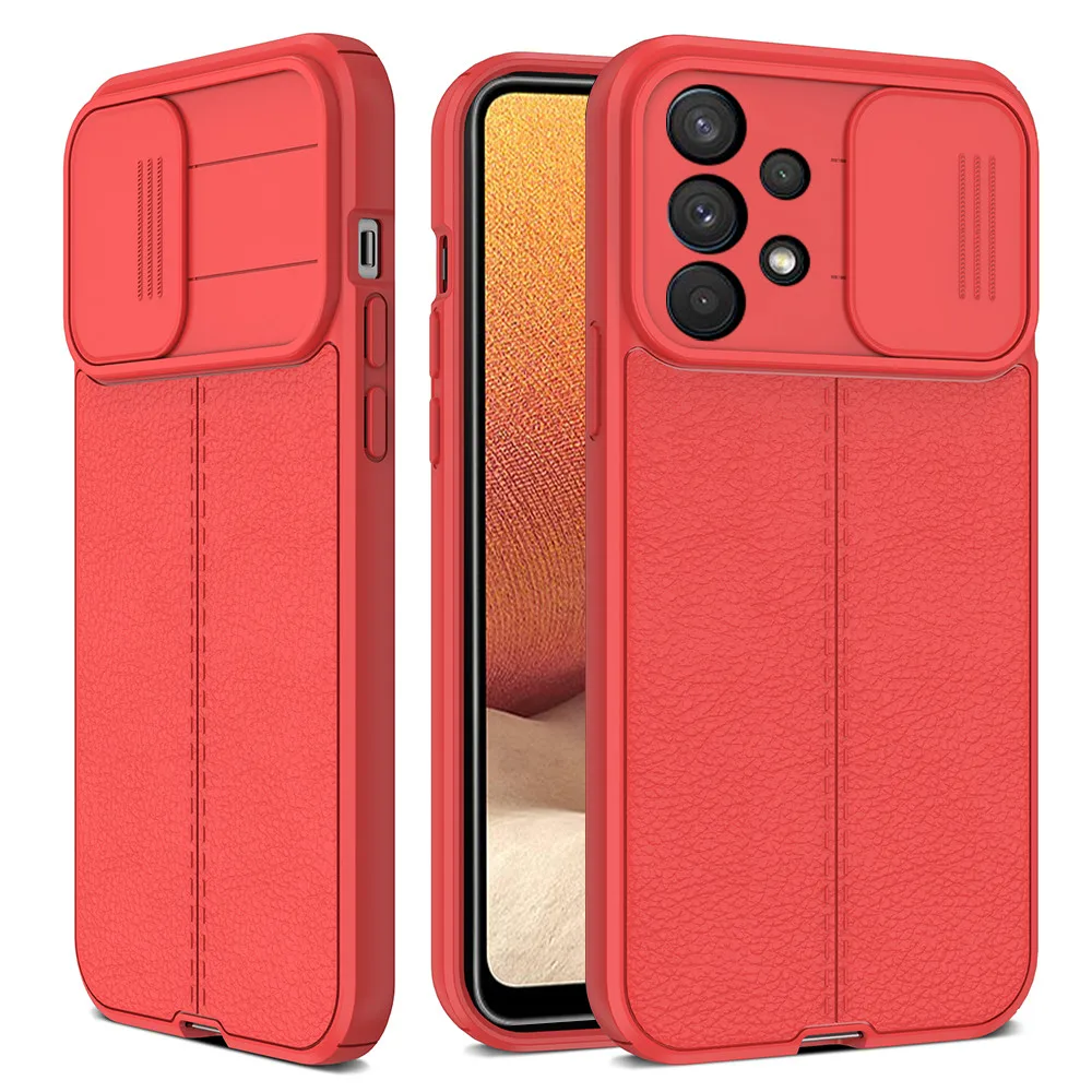 Feature 1Lychee Pattern Leather + Soft Silicone frame + Push slip Camera Protect