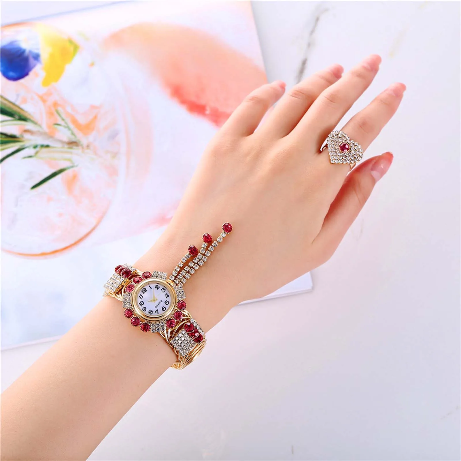 Топовый бренд Роскошные Стразы для женщин браслет часы с кольцом 2 ...