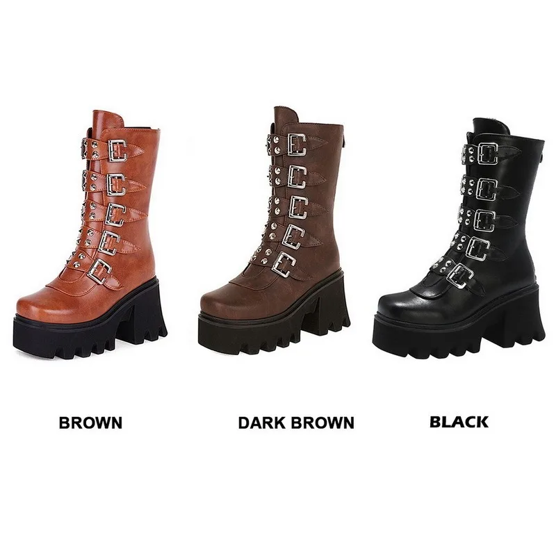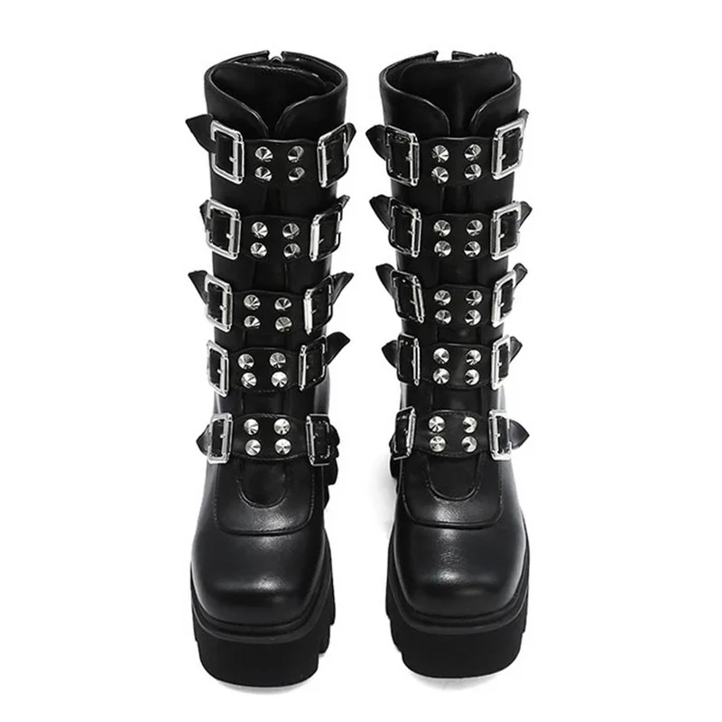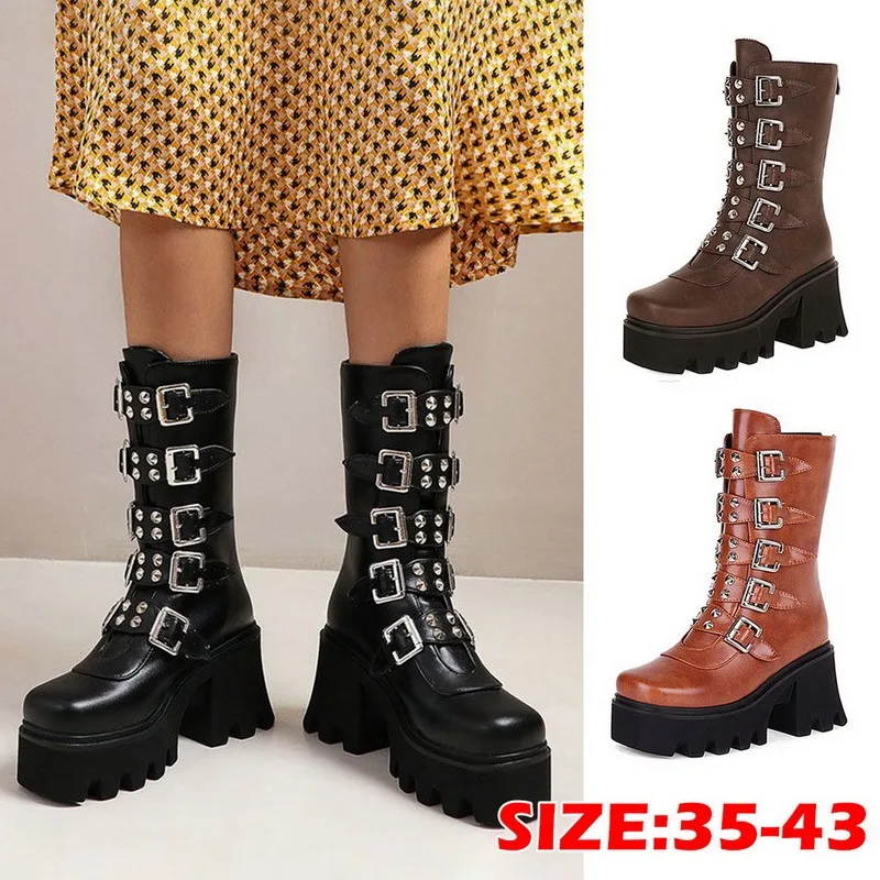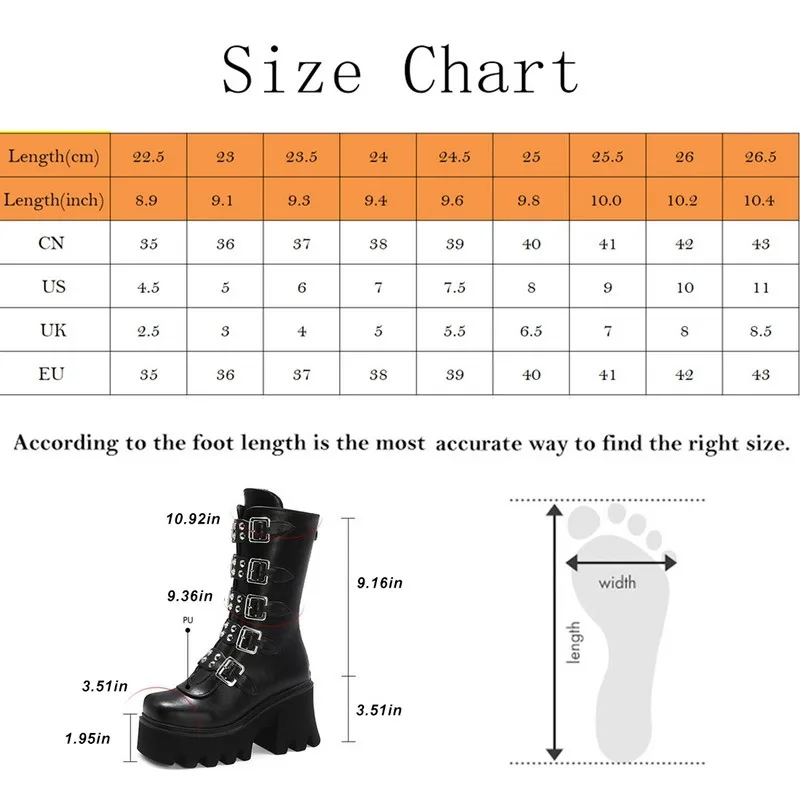 Женские ботинки на платформе, зимние мотоциклетные ботинки на высоком блочном каблуке, обувь для косплея в готическом стиле, большой размер 43