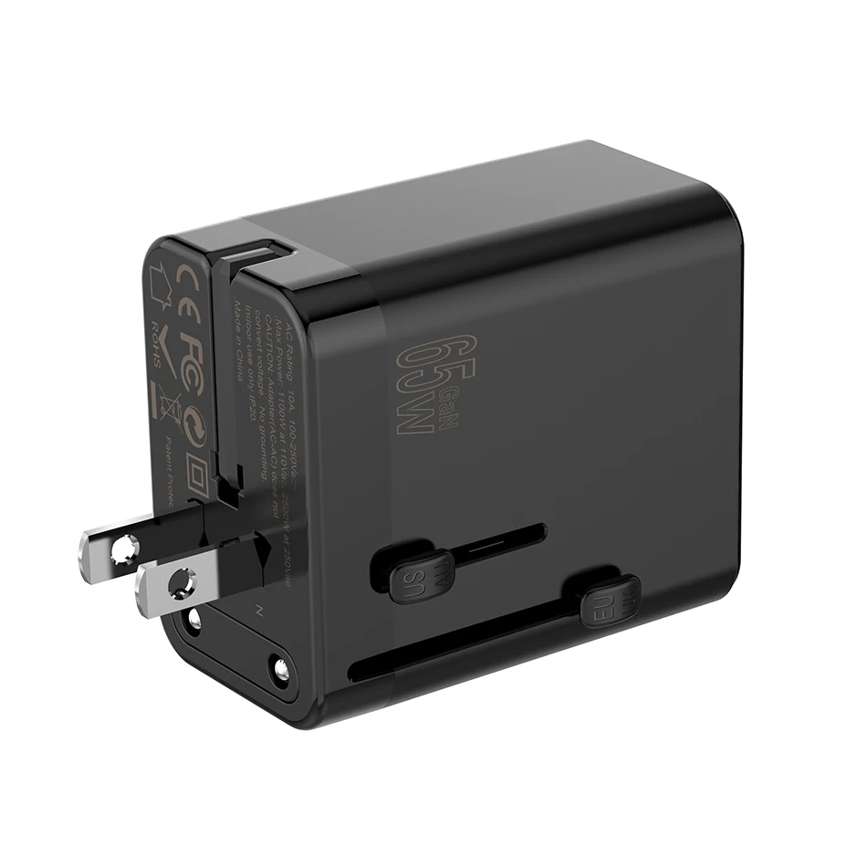URVNS GaN 65W Универсальный адаптер питания для путешествий с 2 USB-C портами и QC3.0 настенным зарядным устройством штепсельная вилка переменного тока для Великобритании, ЕС, Австралии, США
