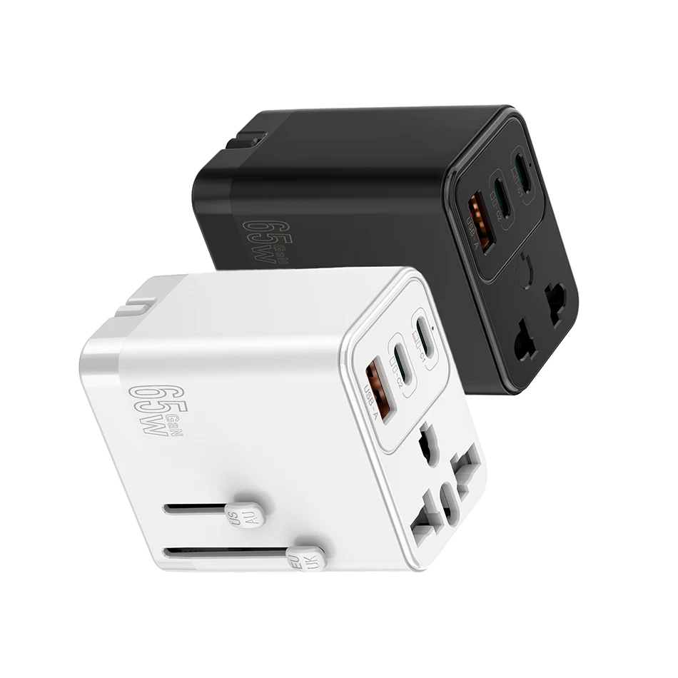 Универсальный дорожный адаптер питания URVNS GaN 65 Вт с 2 портами USB-C и QC3.0, настенное зарядное устройство, розетка переменного тока для Великобритании, ЕС, Австралии, США
