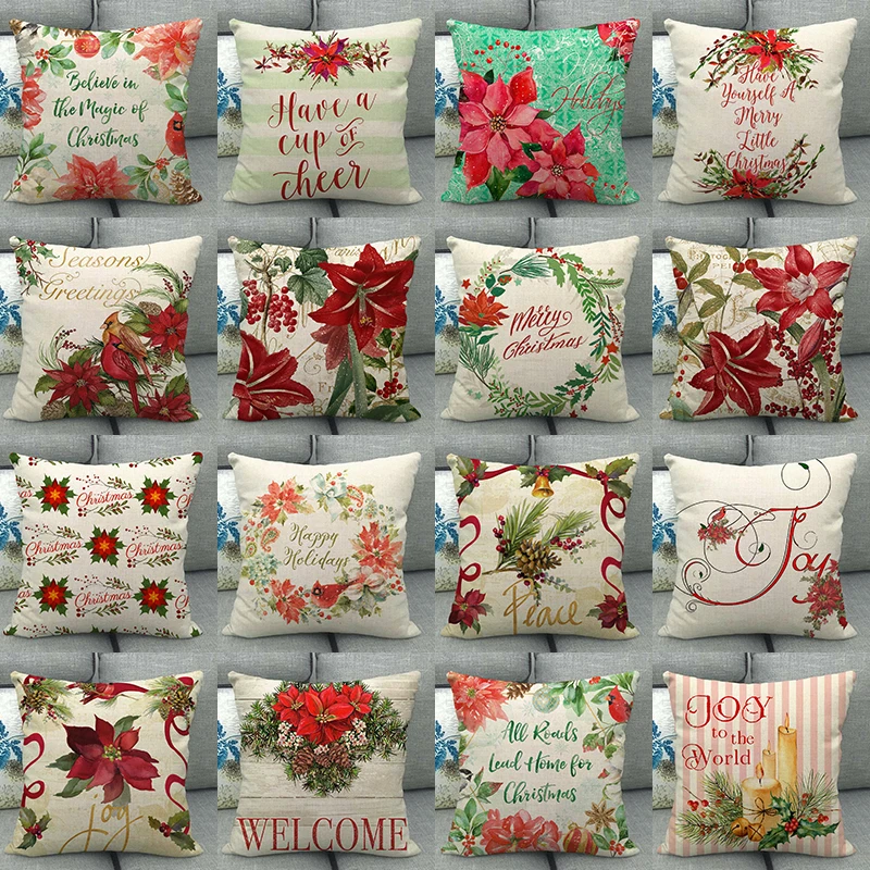 Новогодние и рождественские украшения, наволочки из хлопка и льна с...