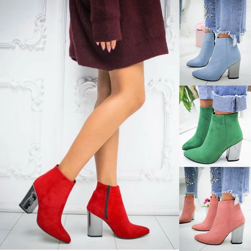 Ботильоны женские на толстом высоком каблуке, ковбойские ботинки с острым носком, кожаная обувь в западном стиле, зеленые, красные, синие, размеры 43, для осени
