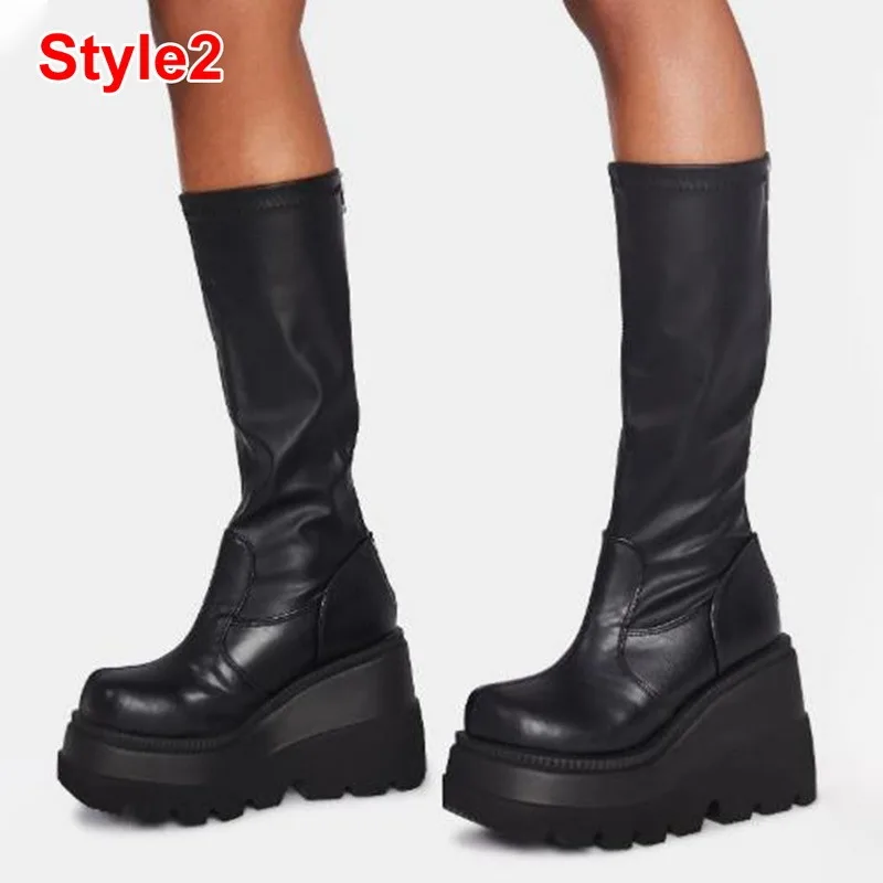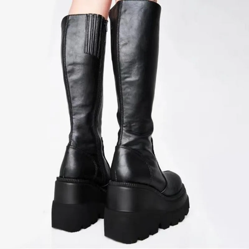 Номер моделиWinter Chunky Boots Platform Women Black Pu Leather Knee High Boots