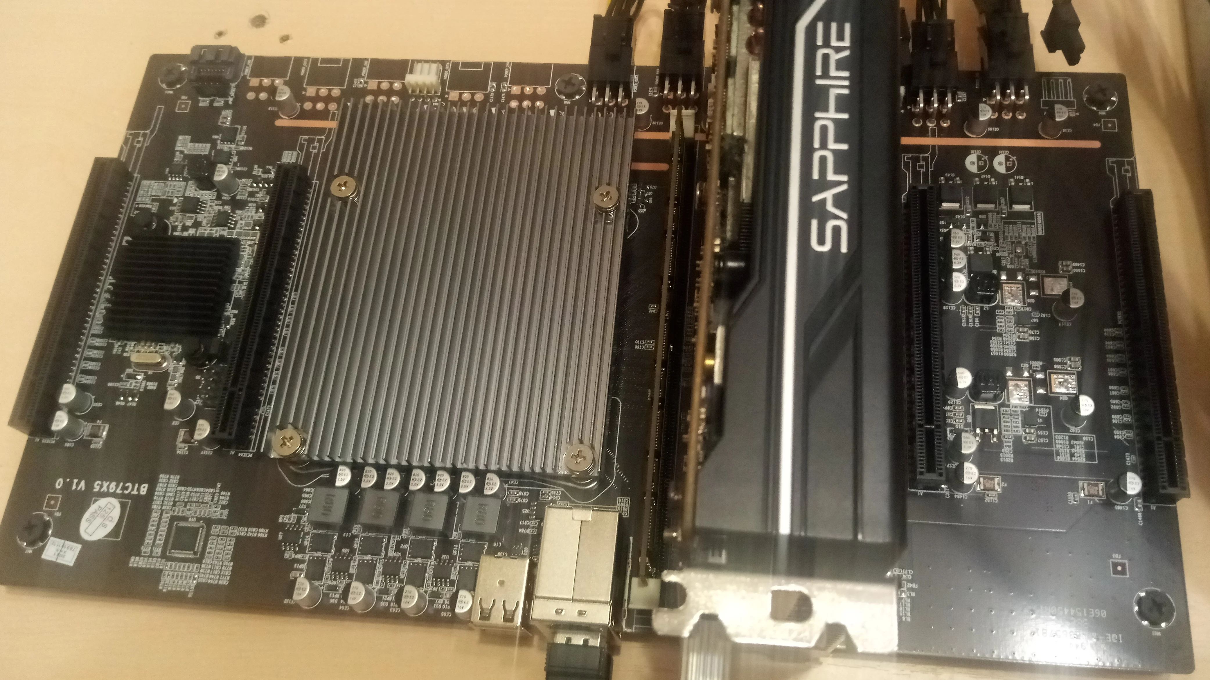 Плата рабочая. Биос сразу настроен. Запустил 5 карт без проблем на 8гб оперативки. Отверстия под корпус атх не подошли