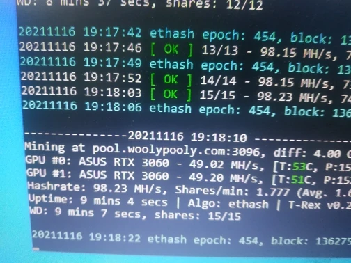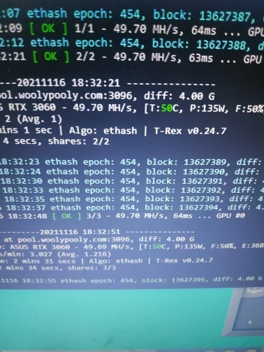 ок, пока одну поставил - rtx 3060 капает 49.3 Mh