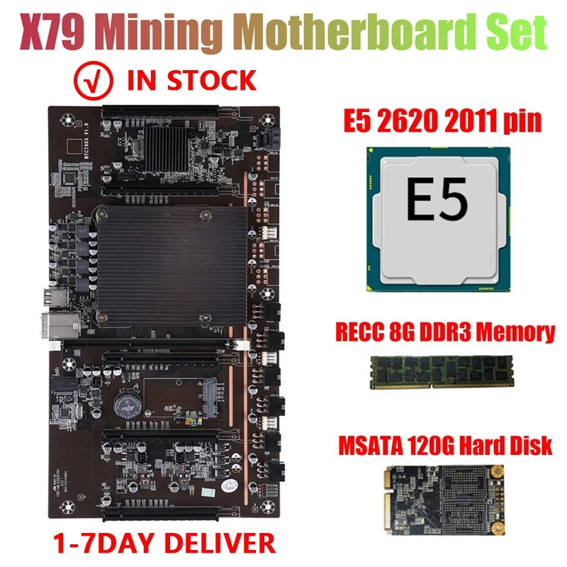 HOT-X79 H61 BTC системная плата для майнинга с E5-2620 2011 CPU + RECC 8G DDR3 ПАМЯТЬ + 120G SSD Поддержка 3060 3080 графической карты