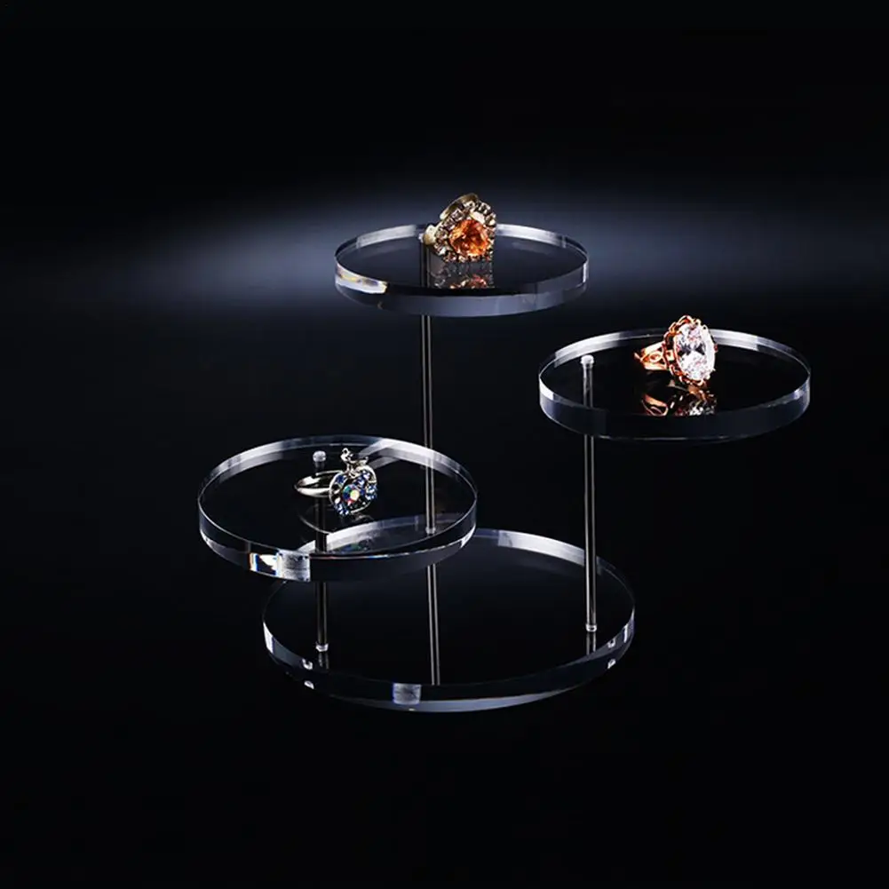 Новый стиль, 3-слойная круглая прозрачная акриловая витрина, ювелирные изделия, ожерелье, серьги, кольцо, вращающаяся витрина для торта, бытовая