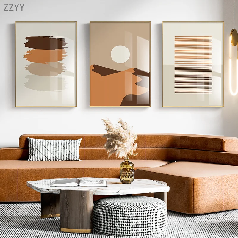 Скандинавский бревен, ветер, оранжевый искусство, абстрактная пустыня, линия, цветок, холст, живопись, Современное украшение для дома, плакаты, простое настенное искусство, картины