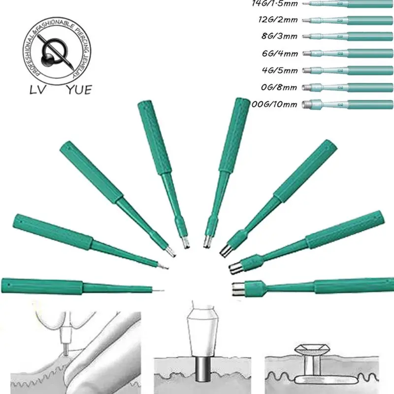 Профессиональный дермальный дырокол, 14 г-00 г, одноразовый дермальный дырокол, биопсия, пирсинг кожи, ювелирные изделия