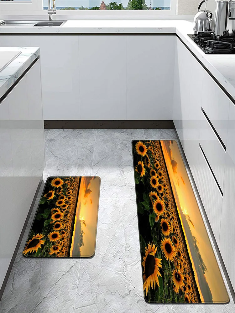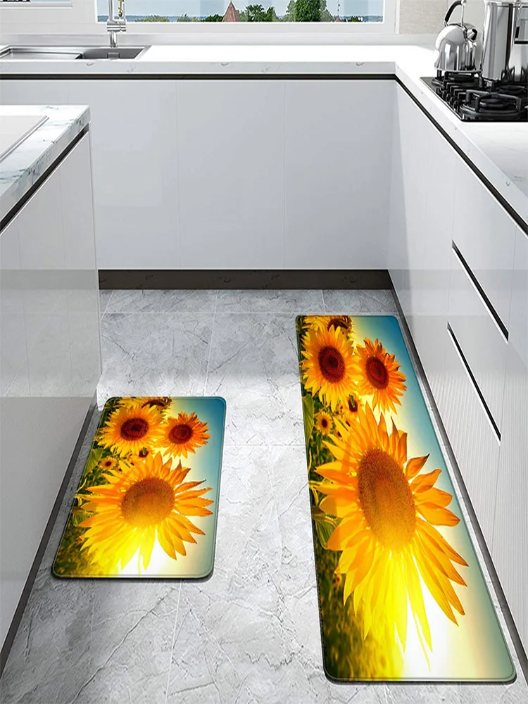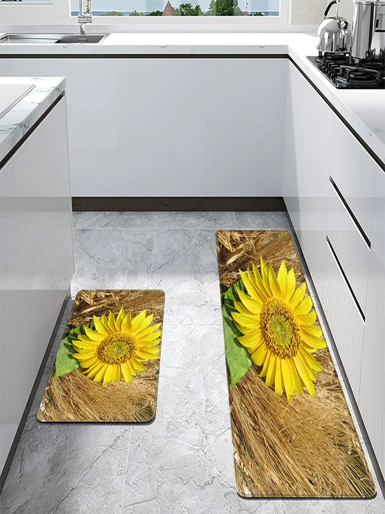 Коврик для кухни с принтом подсолнухов, фланелевый нескользящий, для дома, прихожей, дорожек, деревянного пола, портативный молитвенный коврик, Hbo