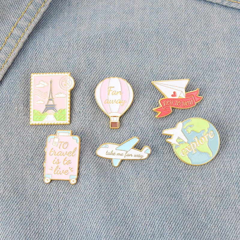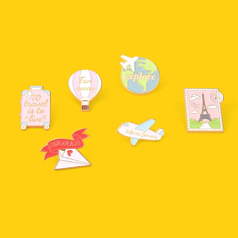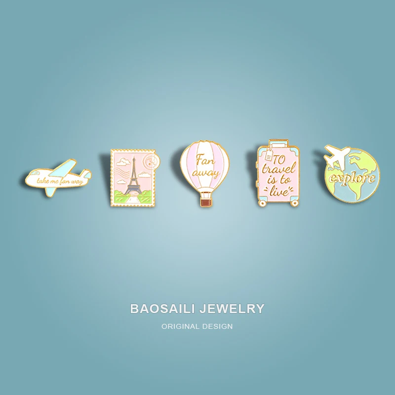 Универсальная брошь из сплава, креативный значок в форме самолета, воздушного шара, чемодана, эмалированный значок, аксессуары для одежды, эмалированные значки