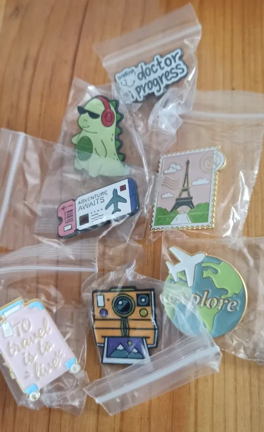 Beautiful pins. This awesome store makes me so happy when they put my pins in clear plastic pin box. I’ve bought several times, 2-28 an order. No pins flying everywhere when I open the package. Protects and keeps them in great condition. My favorite store to buy good quality pins. Thank you for being amazing <3 :)