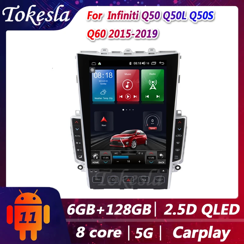 Автомагнитола Tokesla Tesla, Gps, Android, для Infiniti Q50, Q50L, Q50S, Q60, видео, центральный мультимедийный DVD, Автомобильный плеер 5G 2015-2019