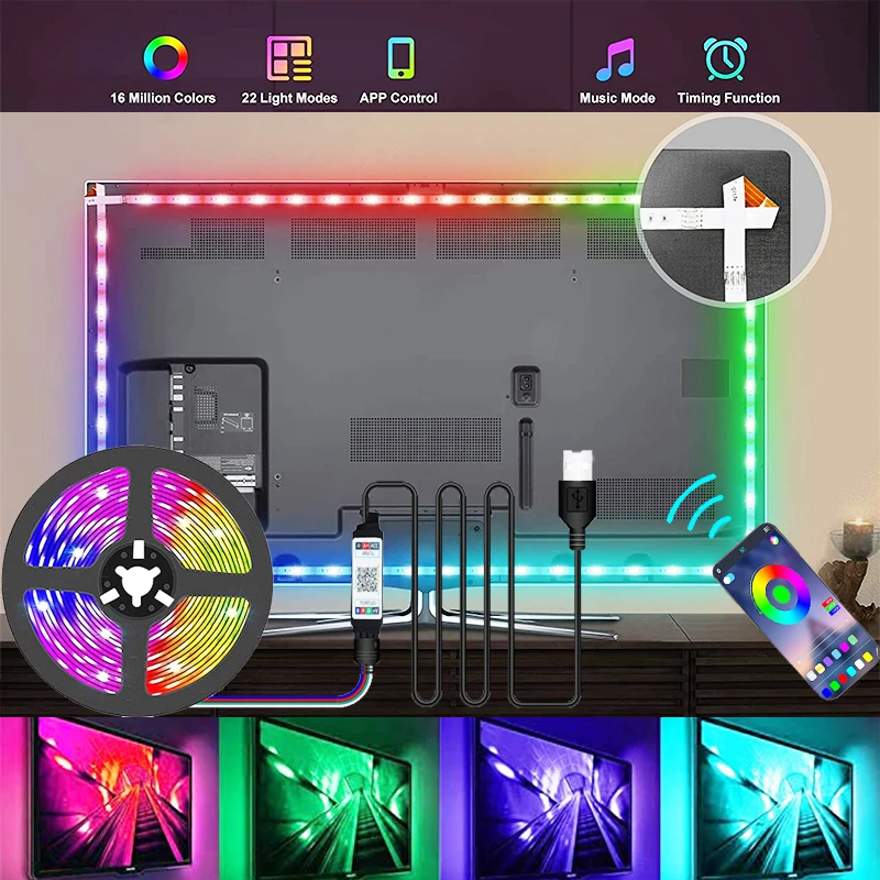 USB светодиодные ленты Bluetooth-совместимая с 5050 RGB светодиодна...