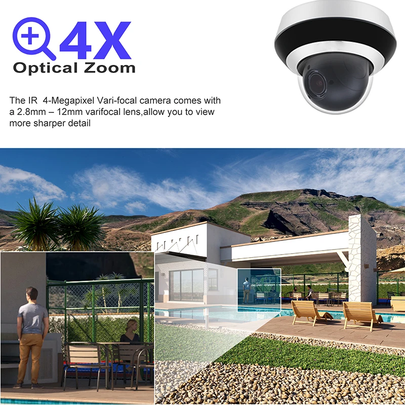 Мини-IP-камера Hikvision, 4 МП, PTZ, 2,8-12 мм, 4-кратный зум, HD, POE, H.265