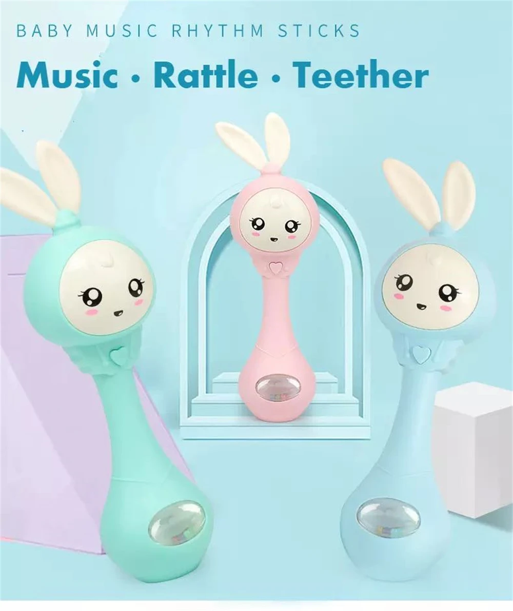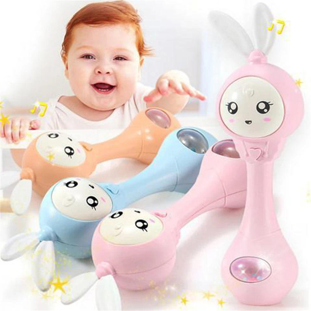 Музыкальные мигающие детские погремушки для младенца 0-12 м, колокольчики для младенца, 4 цвета, милые колокольчики для кроликов, погремушки для новорожденных, Ранние развивающие игрушки