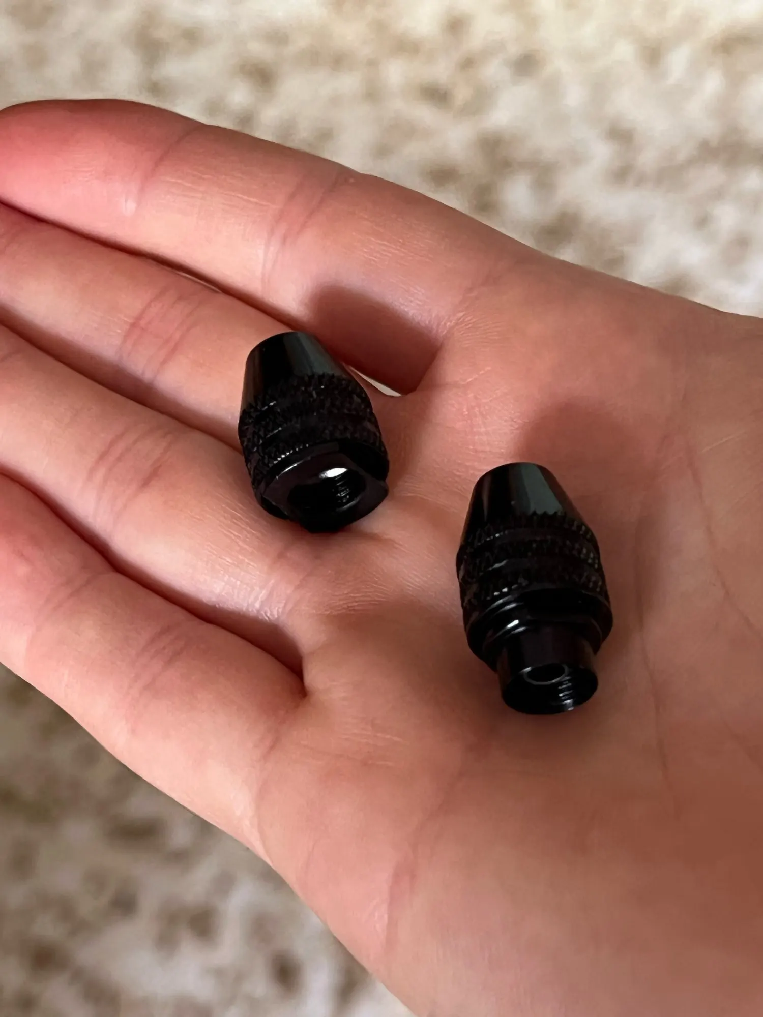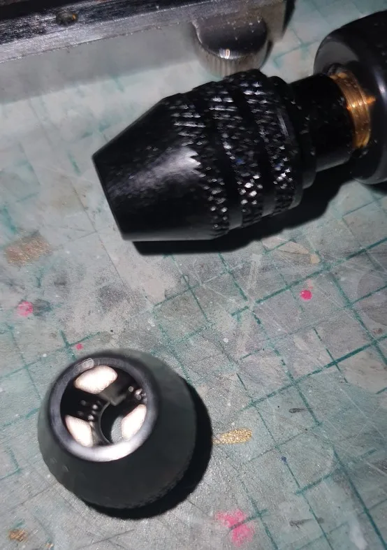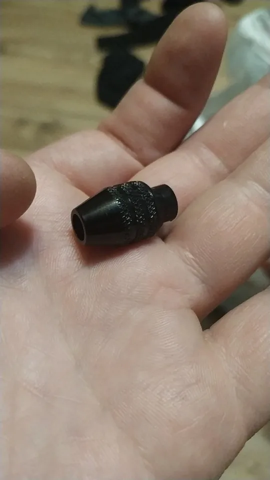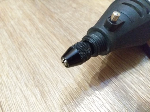 Патрончик так себе. Зажим инструмента происходит при завинчивании патрончика на гравер. Попробовал разные насадки - приличное биение. 4мм зажимает - но на таком диаметре биение ещё больше. Думаю больше подойдет для каких-то мелких сверл.