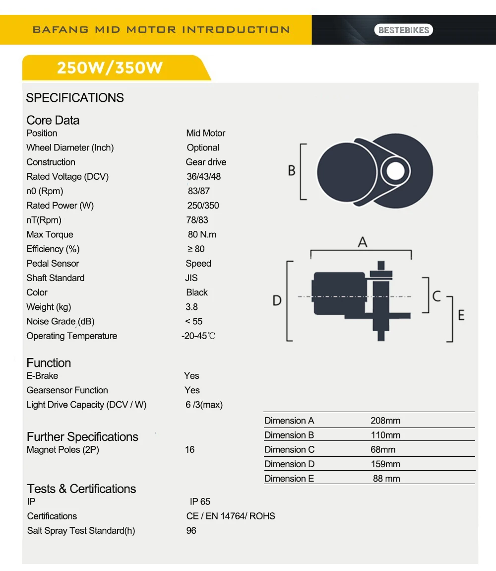 BBS01B 250 Вт BB Размер 68 мм, он подходитВелосипед 68-73 мм.