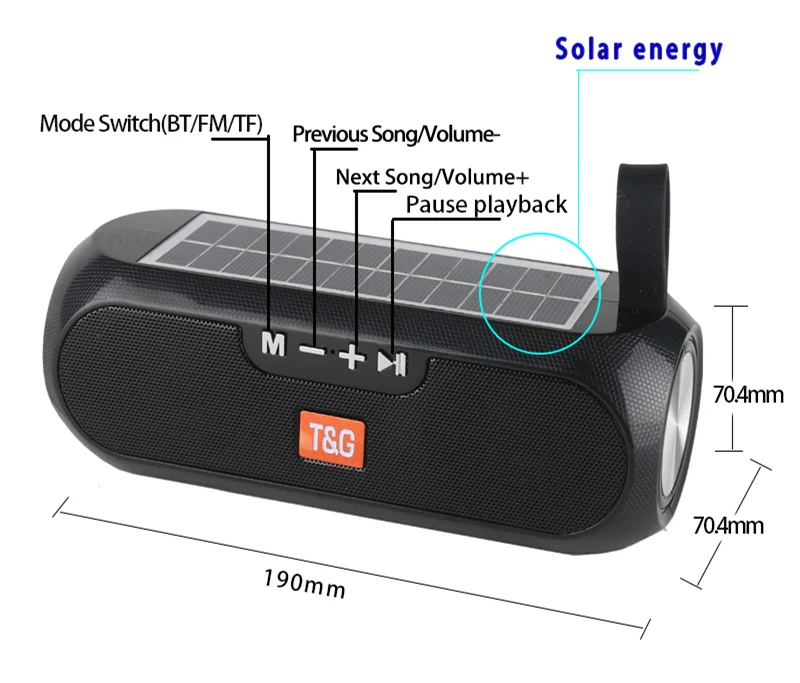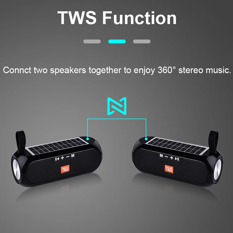 1. Эти портативные колонки поддерживают зарядку от солнечной энергии2. Эти портативные колонки поддерживают все устройства, совместимые с Bluetooth3. Эти портативные колонки поддерживают fm-радио4. Поддержка tf-карты и u-диска;5. Поддержка линии аудиовхода, она может быть непосредственно подключена к мобильным телефонам, планшетам и телевизорам.6. Портативный динамик автоматически отключится через полчаса, если нет подключения bluetooth.7. Его можно использовать парами для достижения стереозвука с двумя каналами-левым каналом и правым каналом.