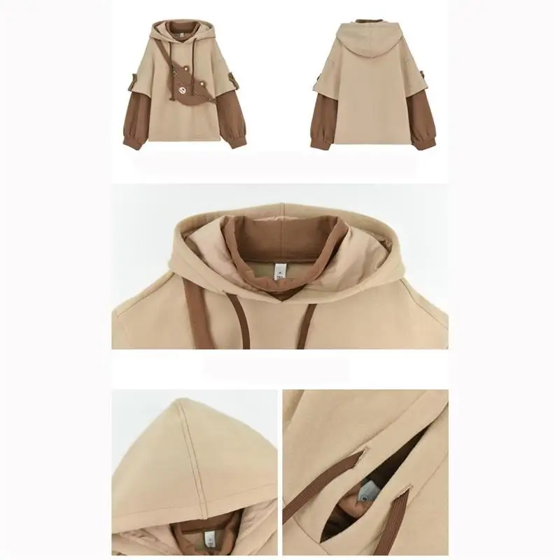 Точки пули: 1. Свободный свитер с милым медведем для отдыха на весну, осень и зиму; Бархатные куртки с имитацией двух предметов с капюшоном. 2. Флисовый свитер, теплый и ветрозащитный. 3. Мягкое плотное пальто в японском стиле для девочек; Милое снижение возраста для девочек. 4. Пол: Женский.