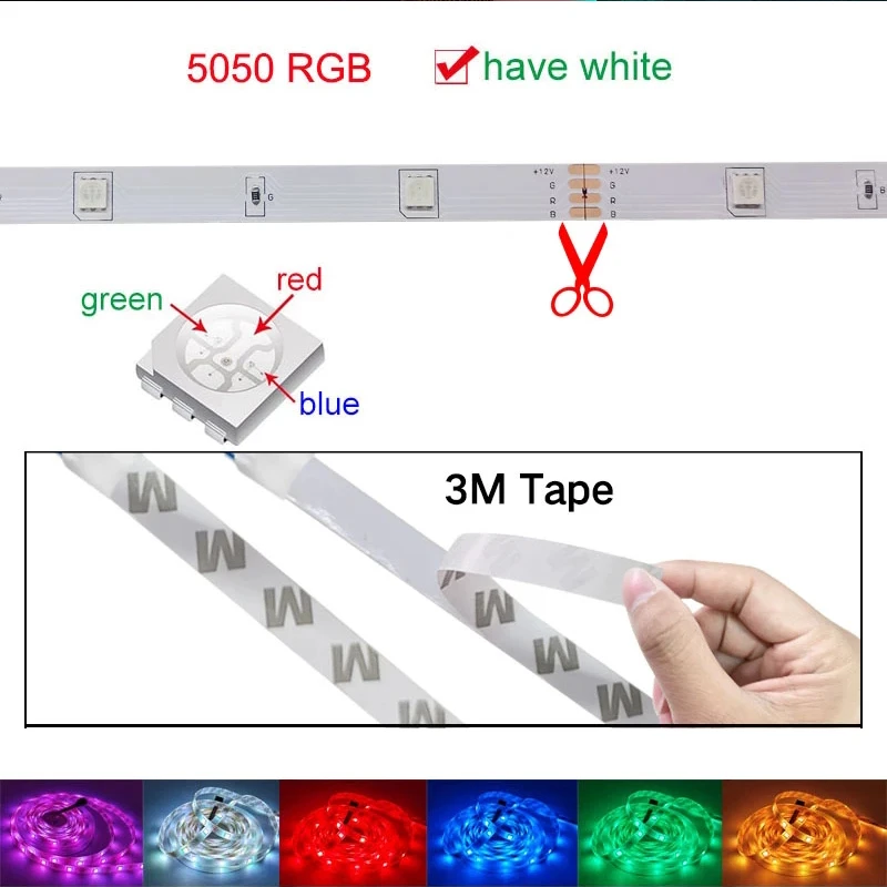 Светодиодная лента, совместимая с Bluetooth, 5050, 5 В, с пультом ДУ