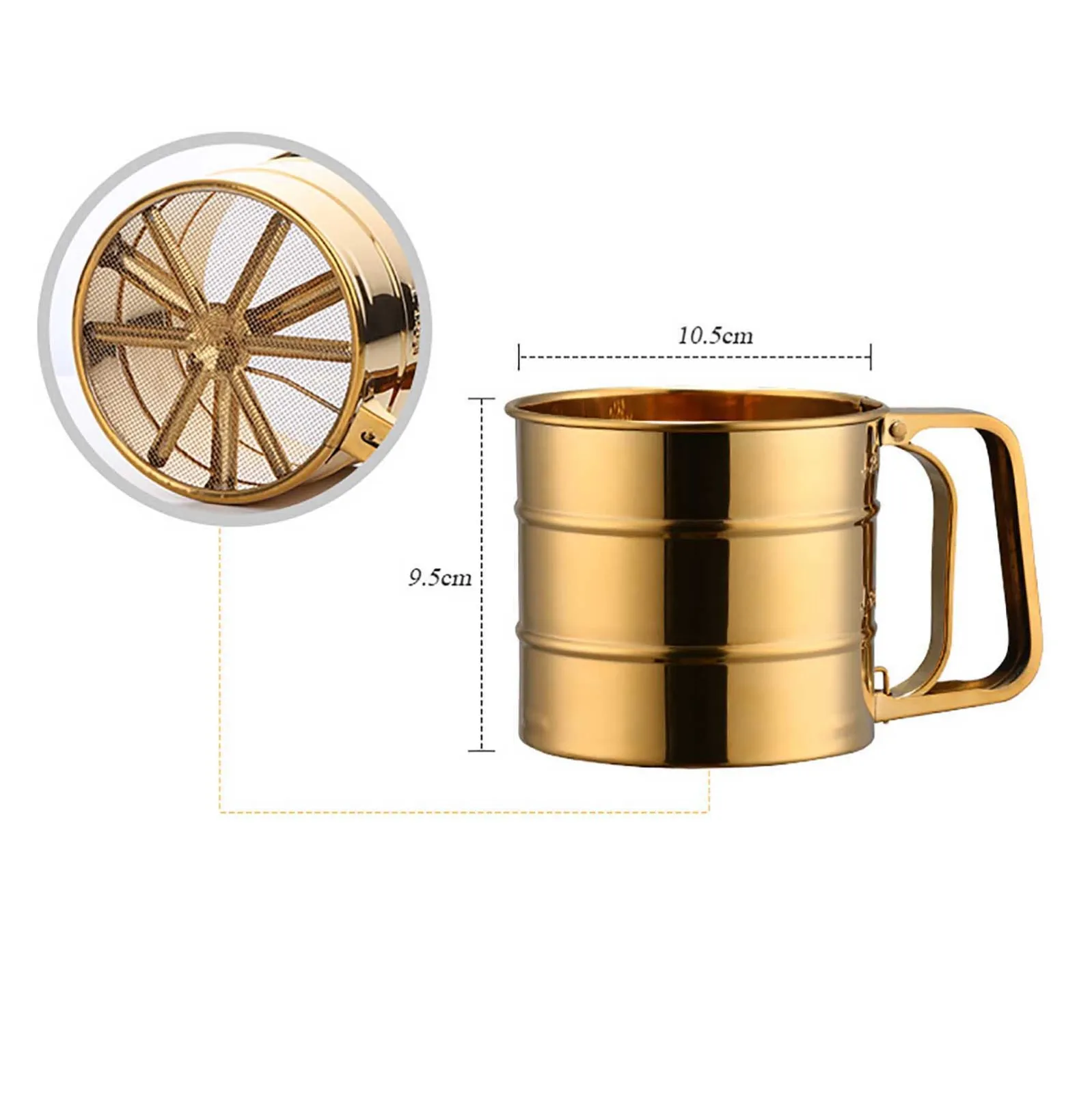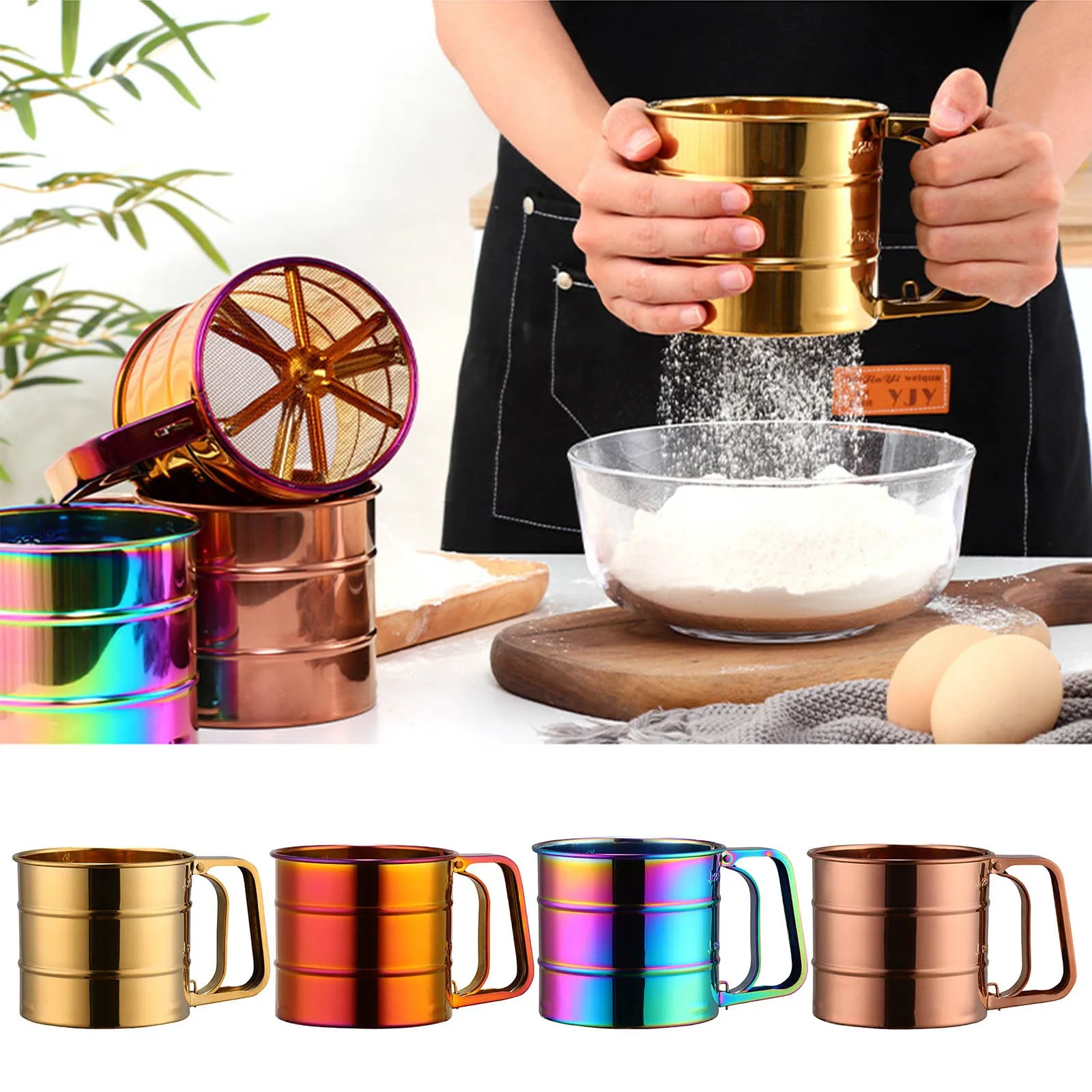 Ручной шейкер для муки из нержавеющей стали, сетчатый сито, чашка для глазировки, сахара, инструмент для выпечки, полуавтоматический инструмент для выпечки, # F