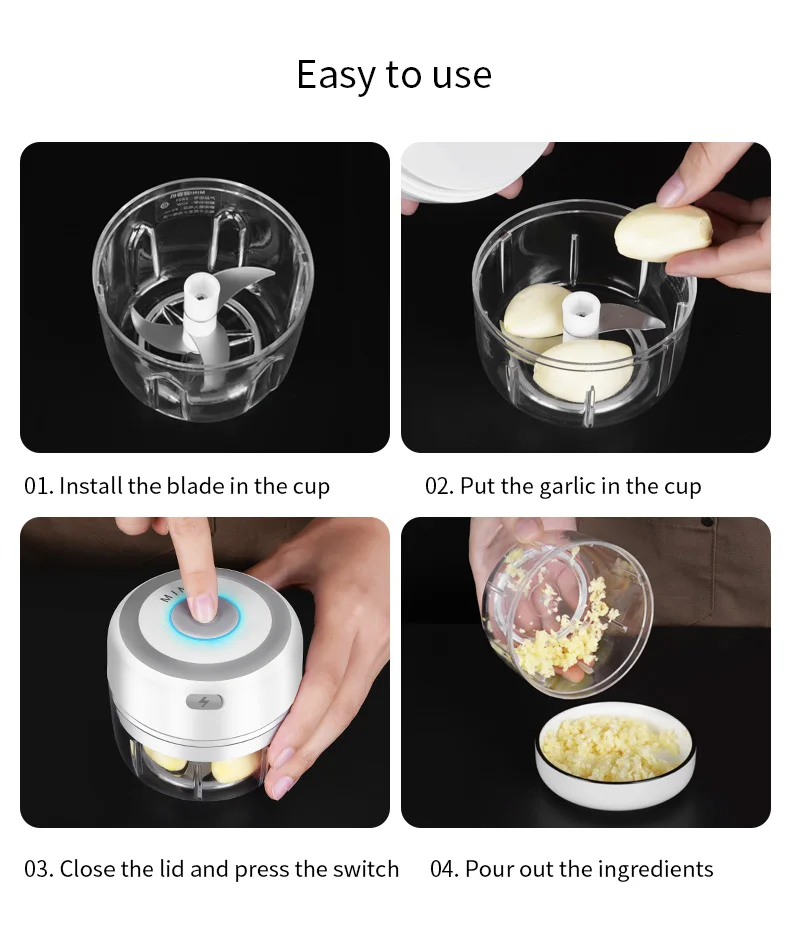 Электрическая машина для чеснока, прочная мини-дробилка, измельчитель с зарядкой от USB для измельчения чеснока, измельчения имбиря, свежего Чили