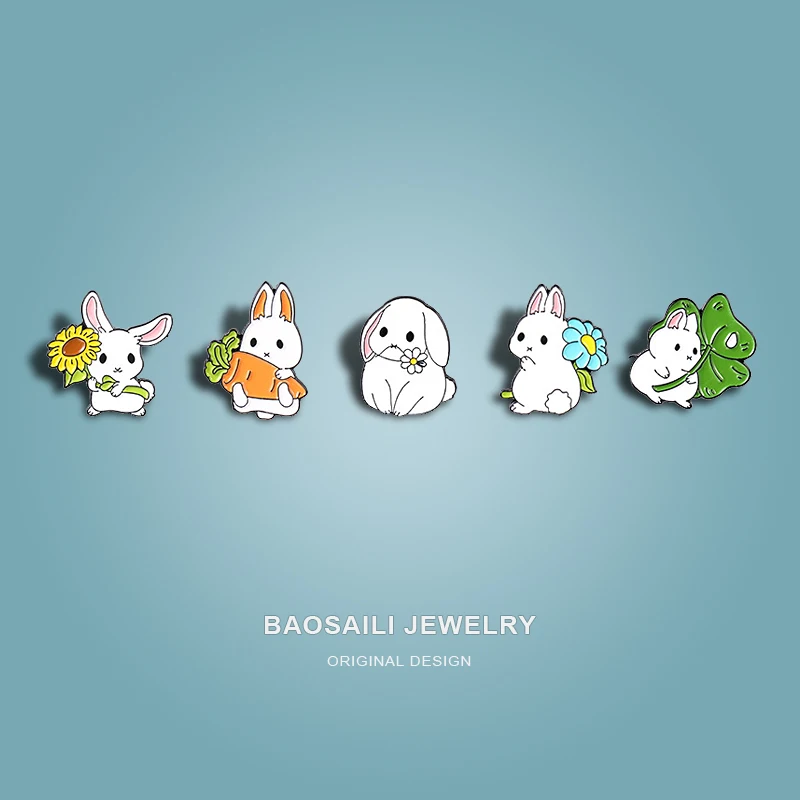 Эмалированные булавки с цветами, растениями, кроликами, Симпатичные...