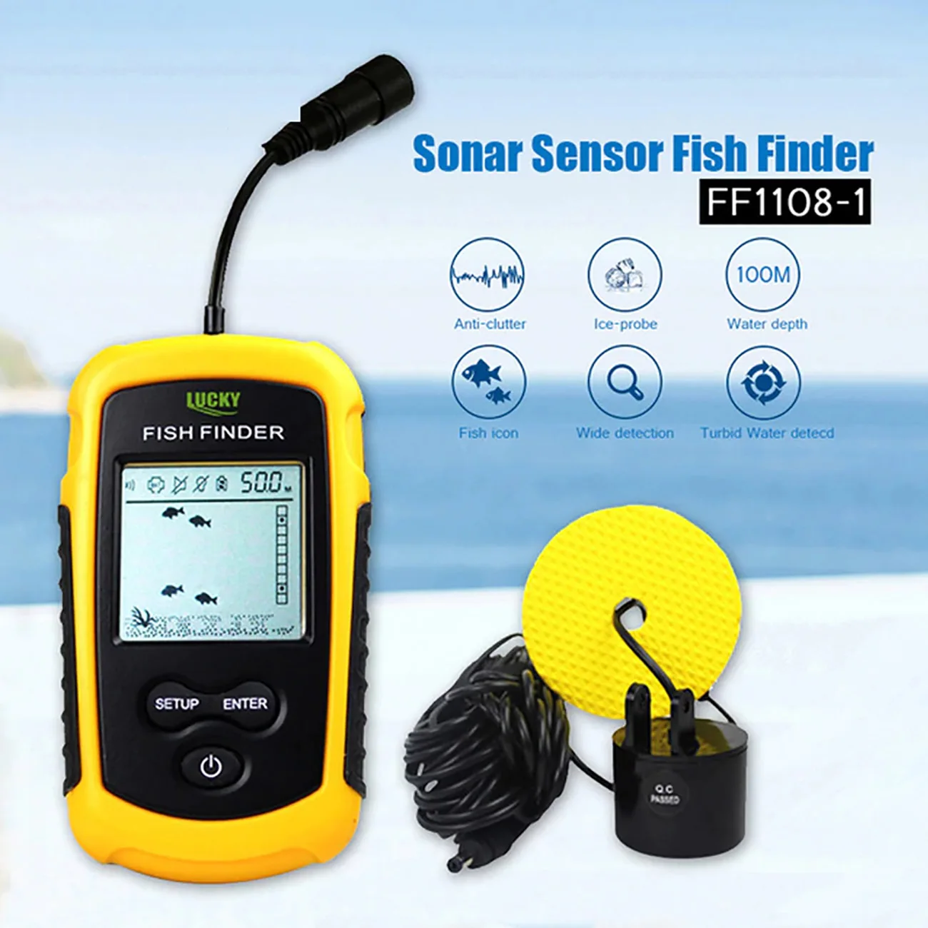 Беспроводной прибор для зимней рыбалки с дальностью действия 120 м, портативный гидролокатор, датчик для поиска глубокой рыбы FFCW1108-1, цветной ЖК-дисплей для рыбалки