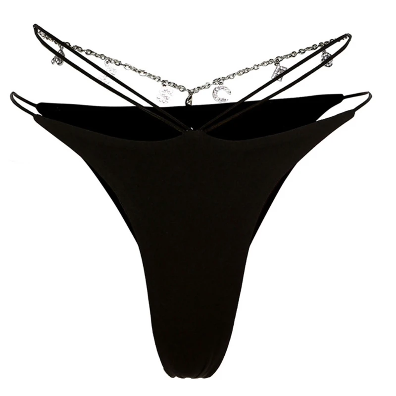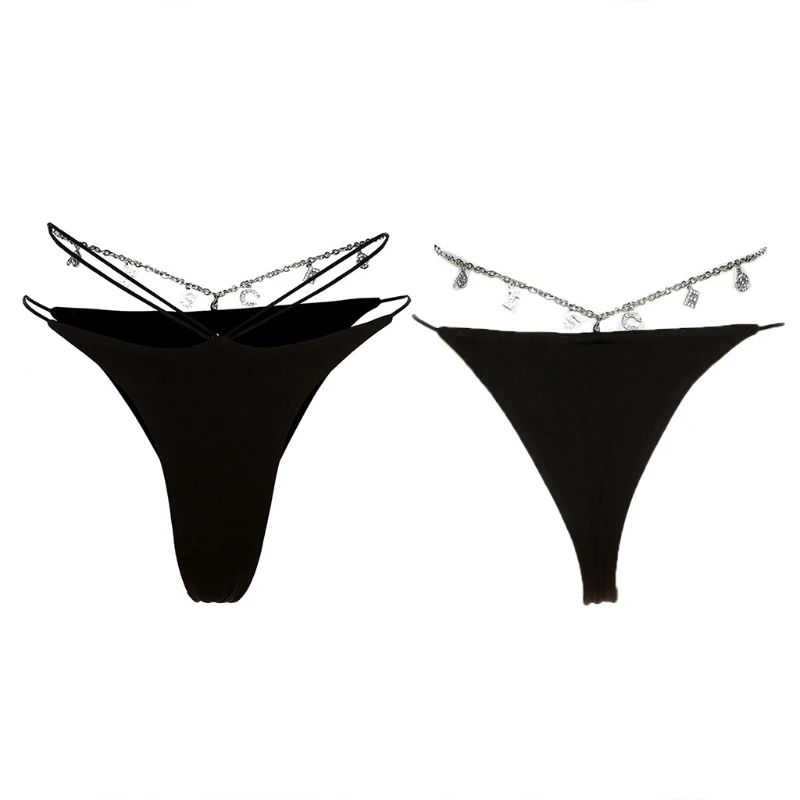 066C женские сексуальные трусики с низкой посадкой, стринги в стиле Харадзюку Стразы, трусики с подвесками в виде букв, нижнее белье, ювелирные изделия для клувечерние