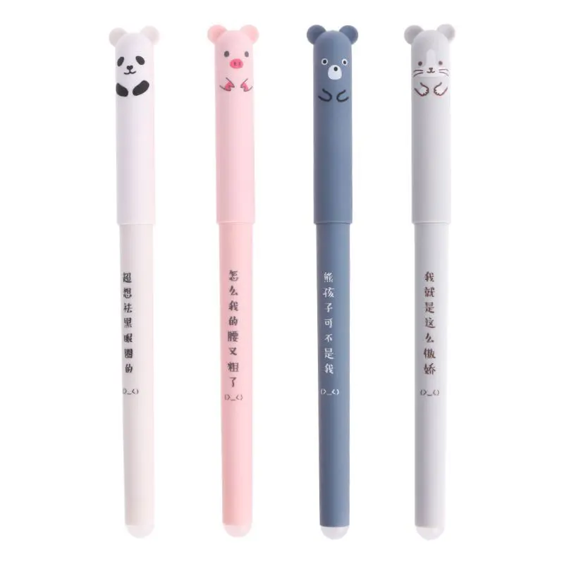 Стираемая ручка с изображением животного, 4 шт., милые гелевые шариковые ручки для школы, 6 цветов, черные, синие, красные, фиолетовые, зеленые, оранжевые стержни