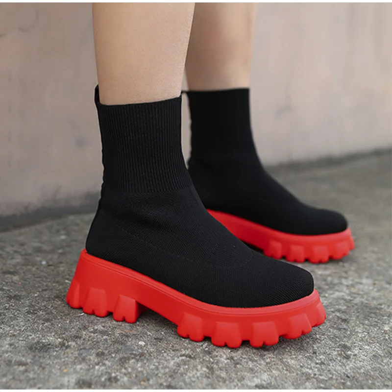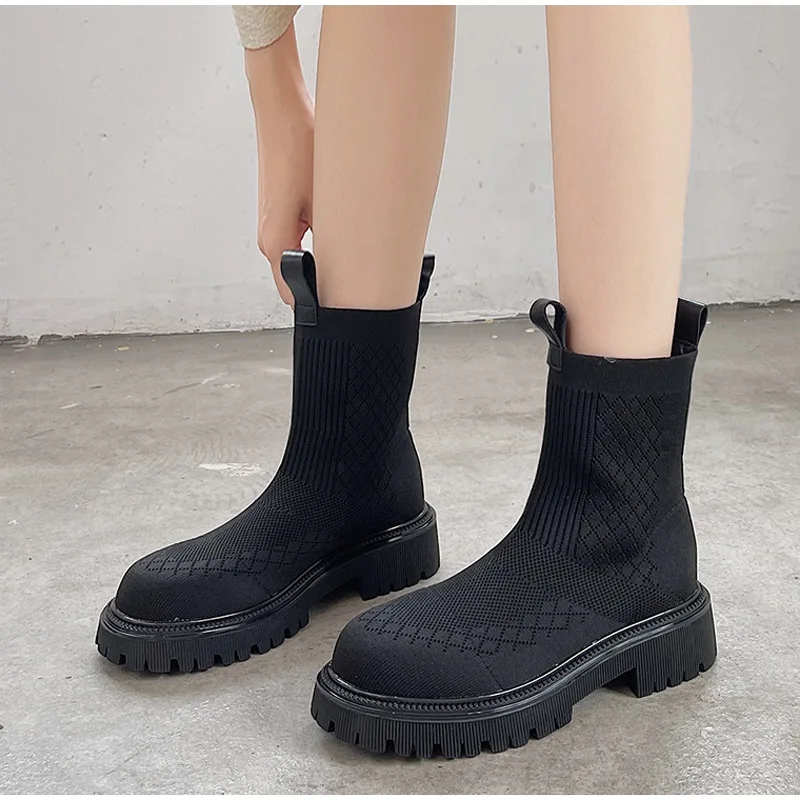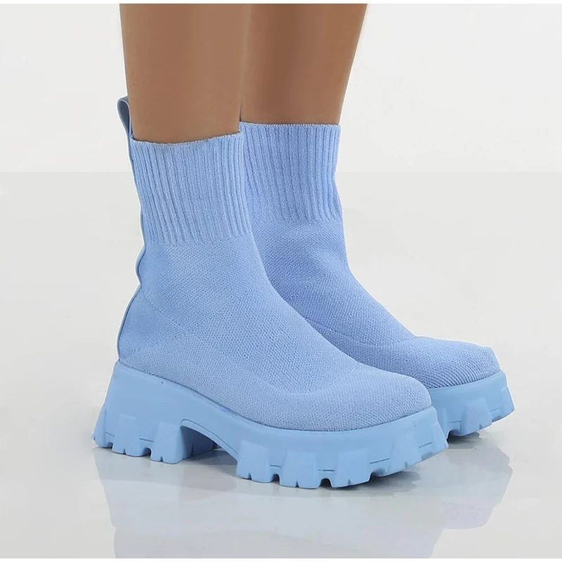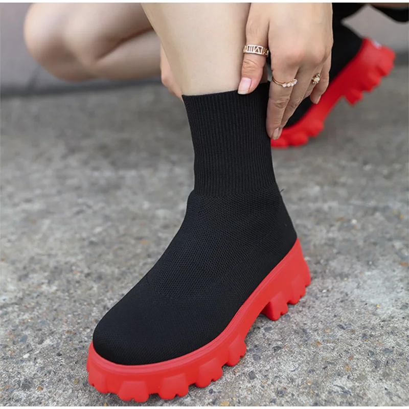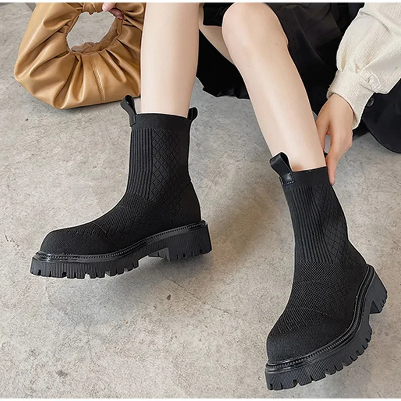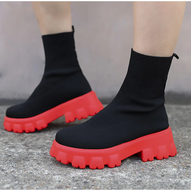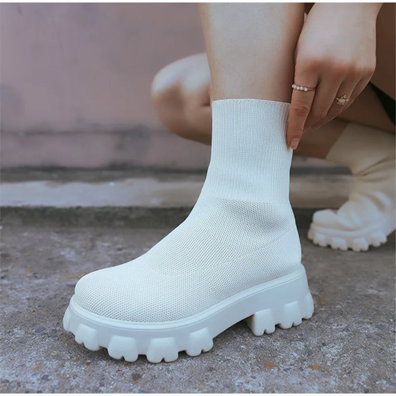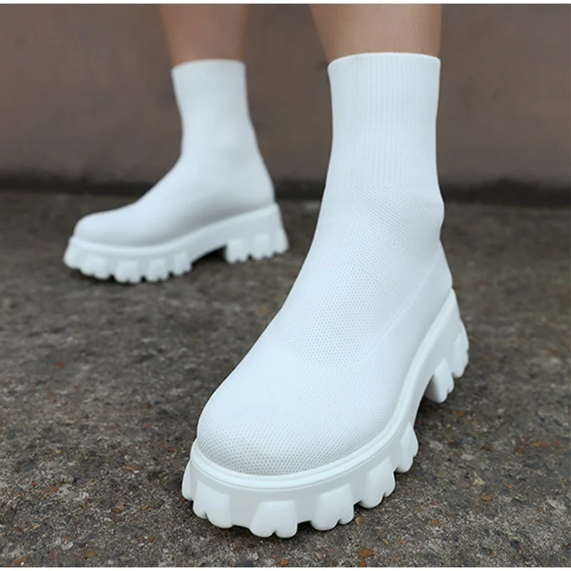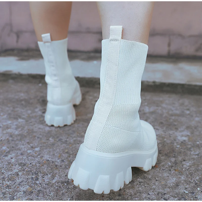 Женские вязаные сапоги до середины икры, женские сапоги на платформе, носки, Дамская Повседневная обувь без шнуровки на толстой подошве, сохраняющая тепло модная обувь 2021