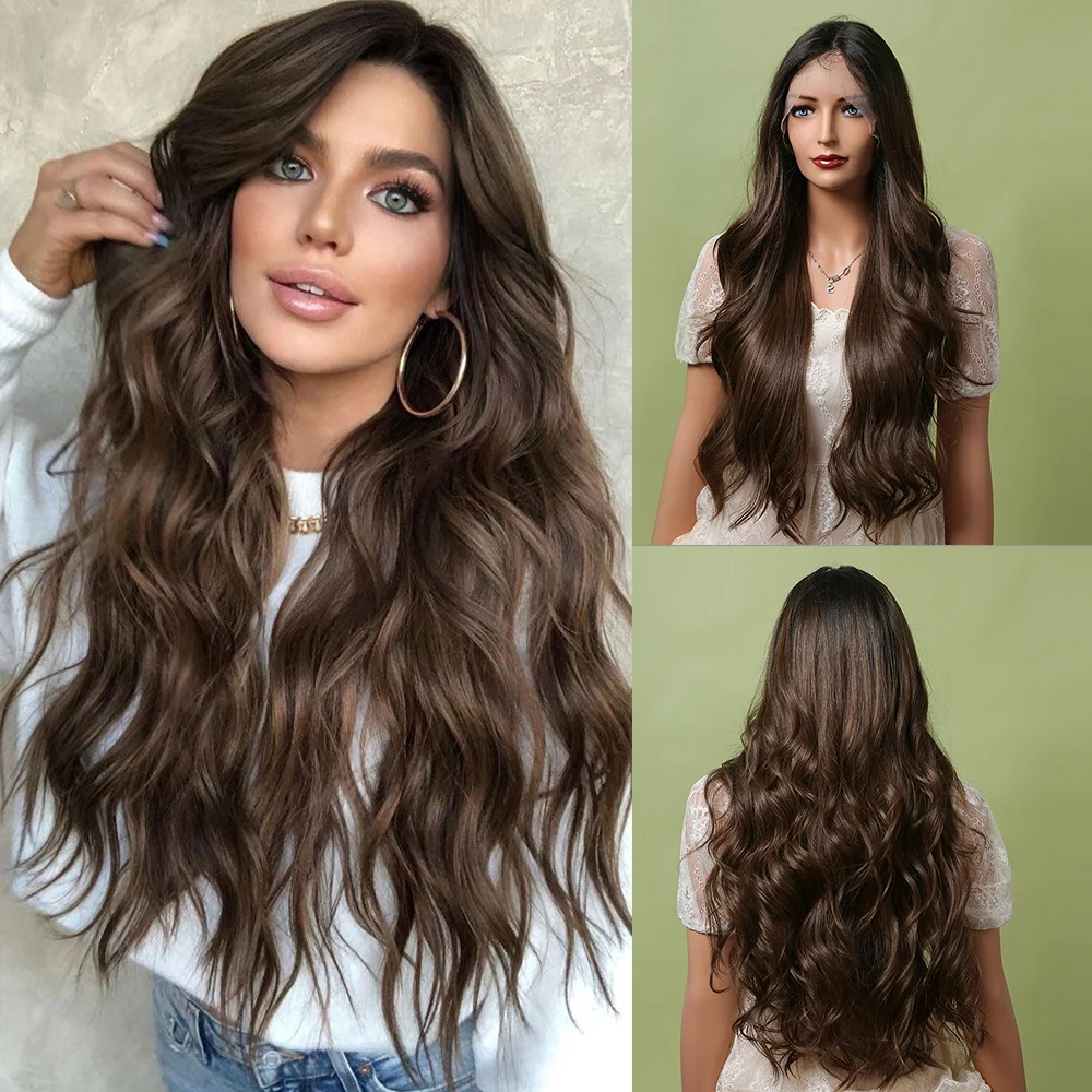 EASIHAIR, длинные темно-коричневые парики из синтетических натуральных волос, кружевные парики для женщин, парики для косплея, черный парик высокой плотности