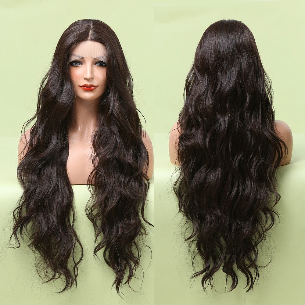 Длинные Синтетические кружевные передние волнистые парики для женщи...