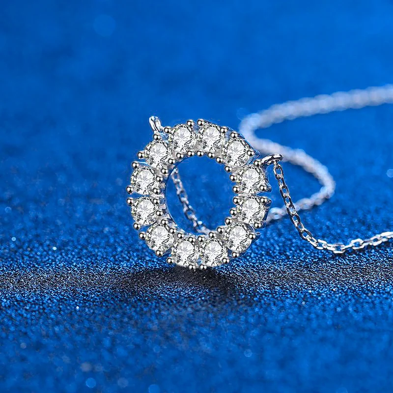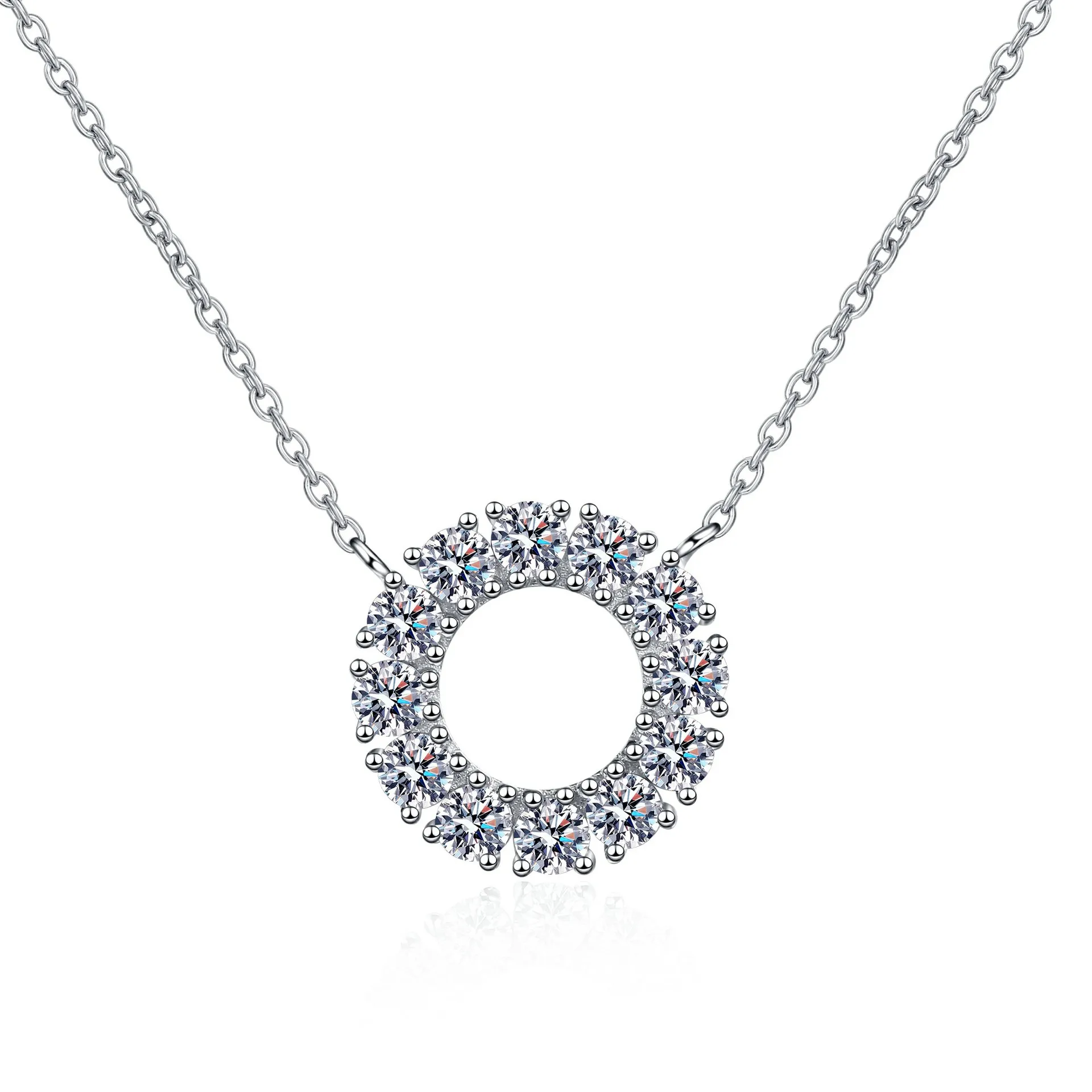 Настоящий Муассанит ожерелье цельное Серебро 925 стерлингового серебра ожерелье с круглой подвеской с колье для женщин мужчин обещание свадебного подарка ювелирных изделий
