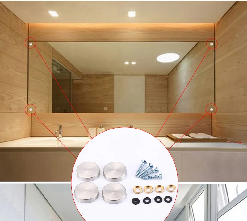 Зеркальные винты из нержавеющей стали с декоративной крышкой, комплект 60 штук, для рекламы ногтей, стеклянная винтовая крышка, Держатель головки, зажим, латунная шайба