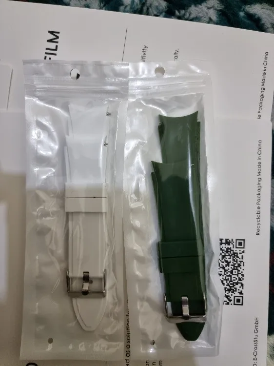 Продавец отправил товар быстро . В Запорожье ремешки приехали за 3 недели,упакованы были отлично . Качество силикона очень хорошее, приятное к телу, очень похоже на оригинал . вживую выглядят как на картинке. Вообщем рекомендую!