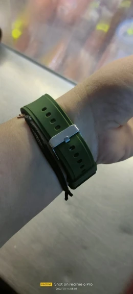 Неплохой ремешок. Пыль собирает не так сильно как обычные силиконовые, этот чуть тверже и немного напоминает резину. На среднюю руку пойдет.