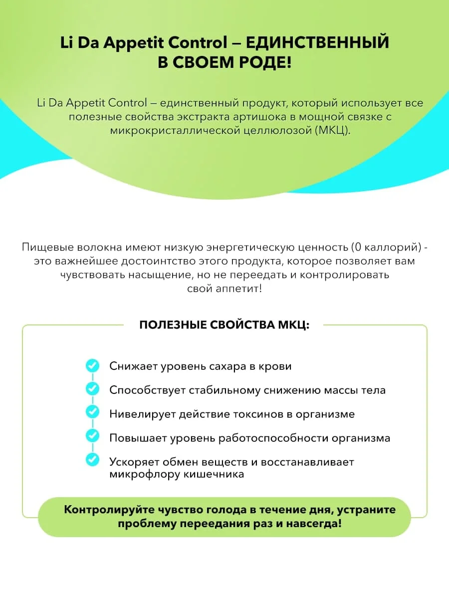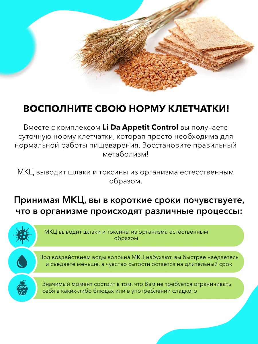 LiDa ЛиДа. МКЦ Appetit Control. Микрокристаллическая целлюлоза. Жиросжигание, контроль веса, таблетки для похудения, спортпит
