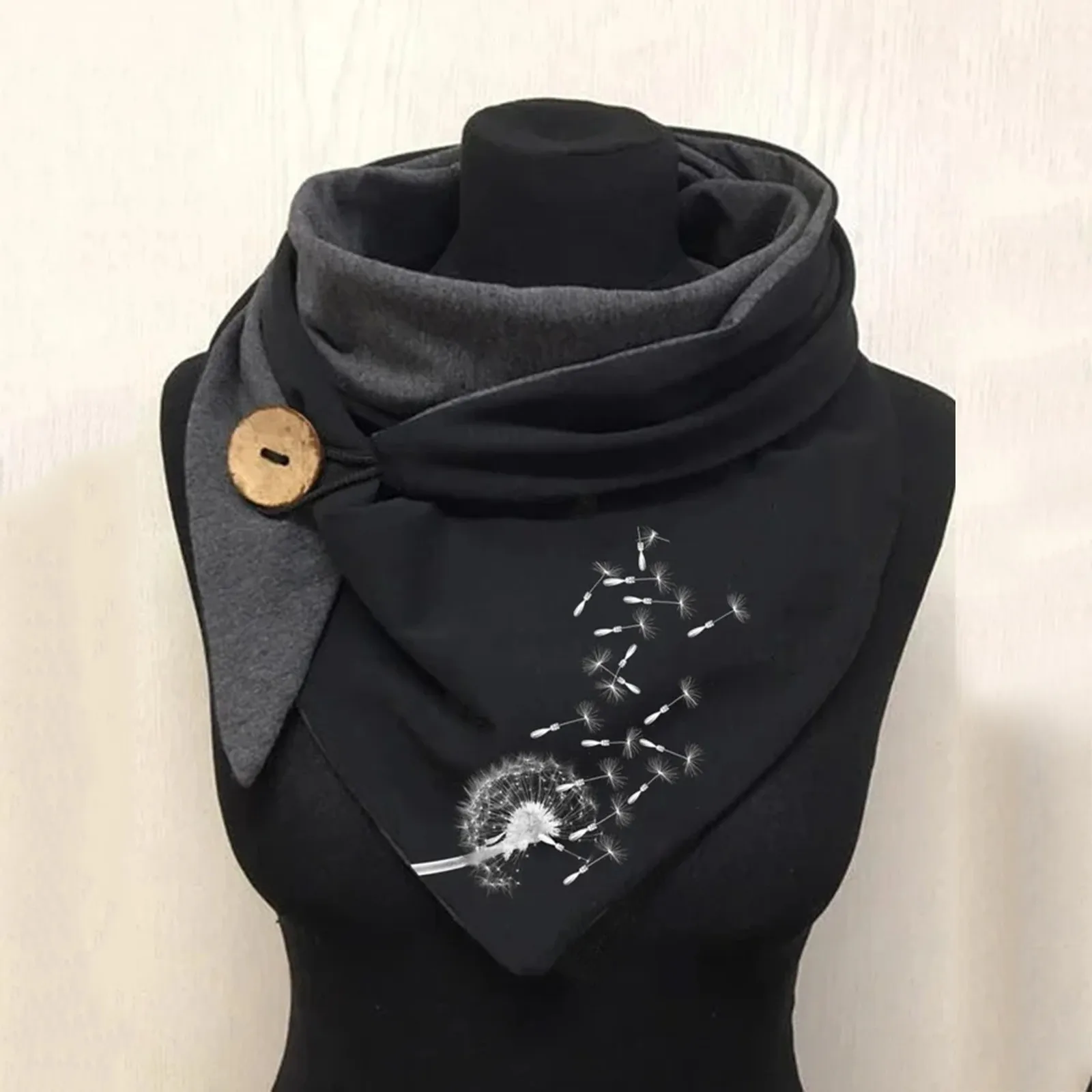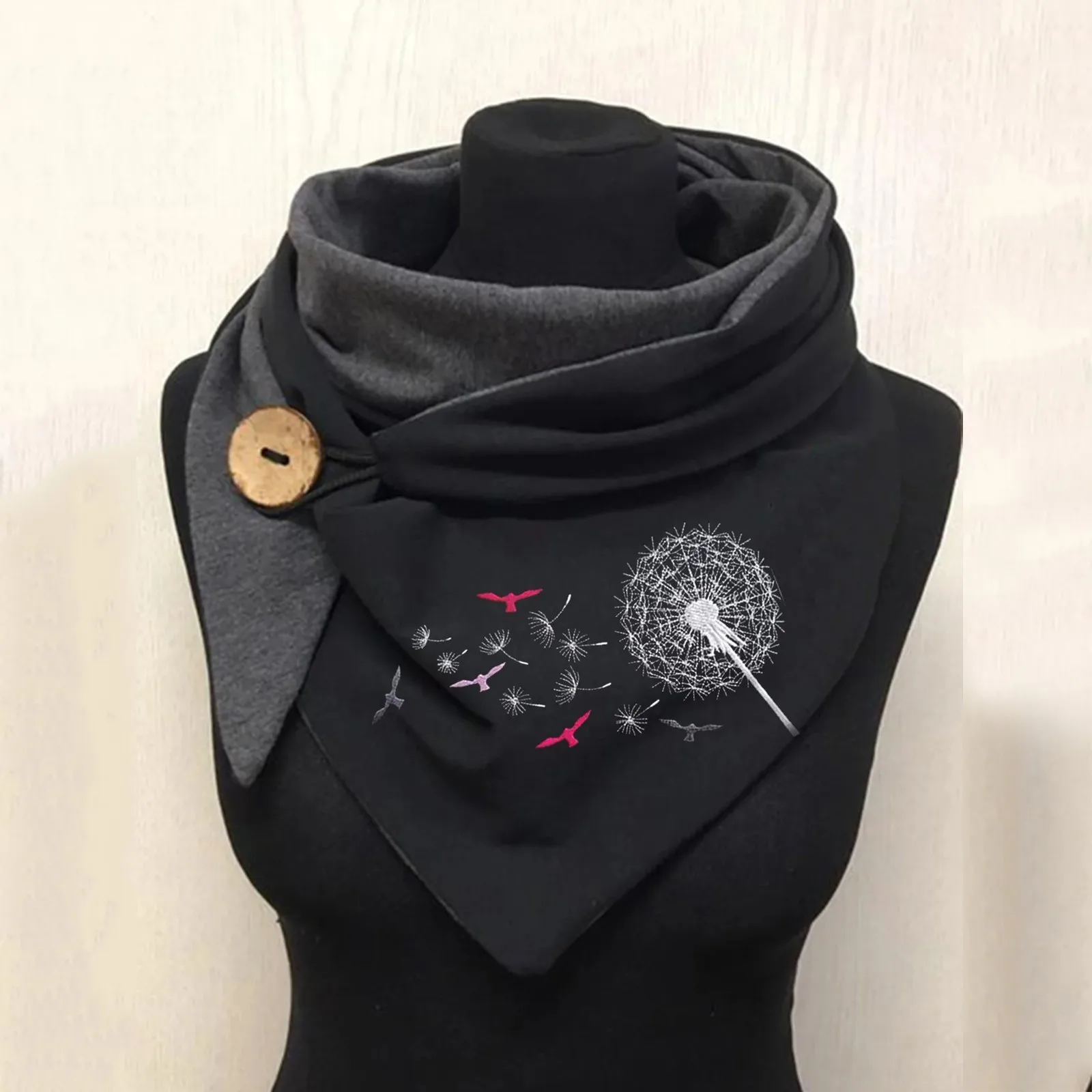 Женский Теплый двухслойный шарф с цветочным принтом, на пуговицах