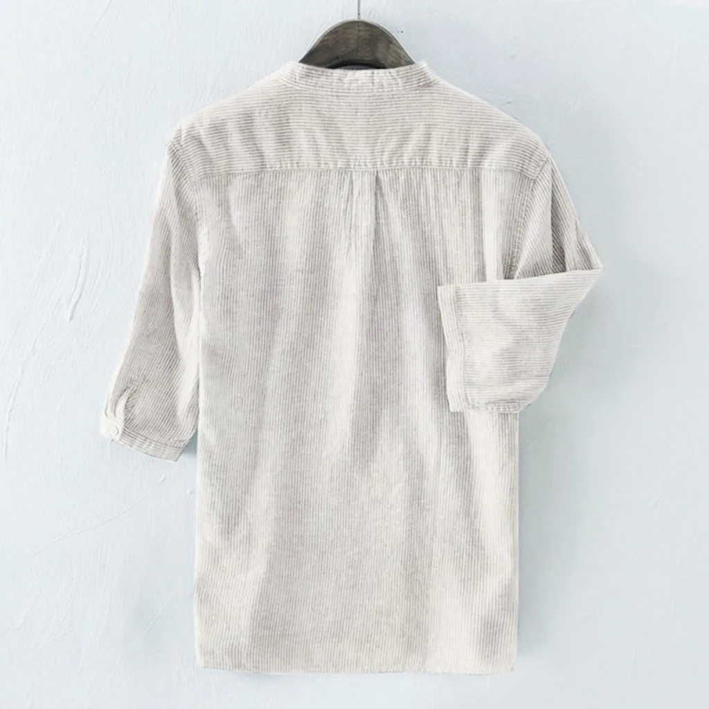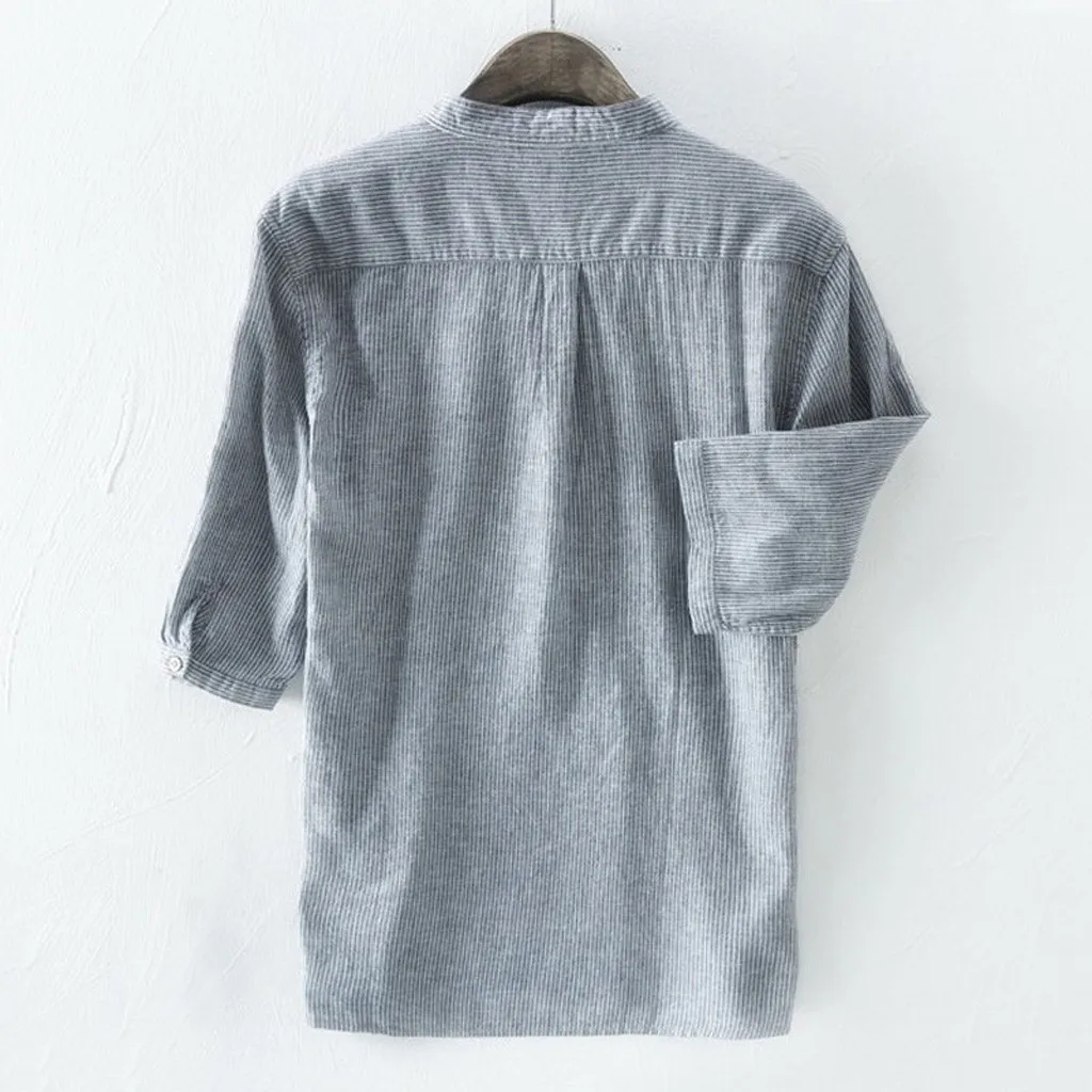 Мужская рубашка с коротким рукавом и воротником-стойкой, из хлопка и льна