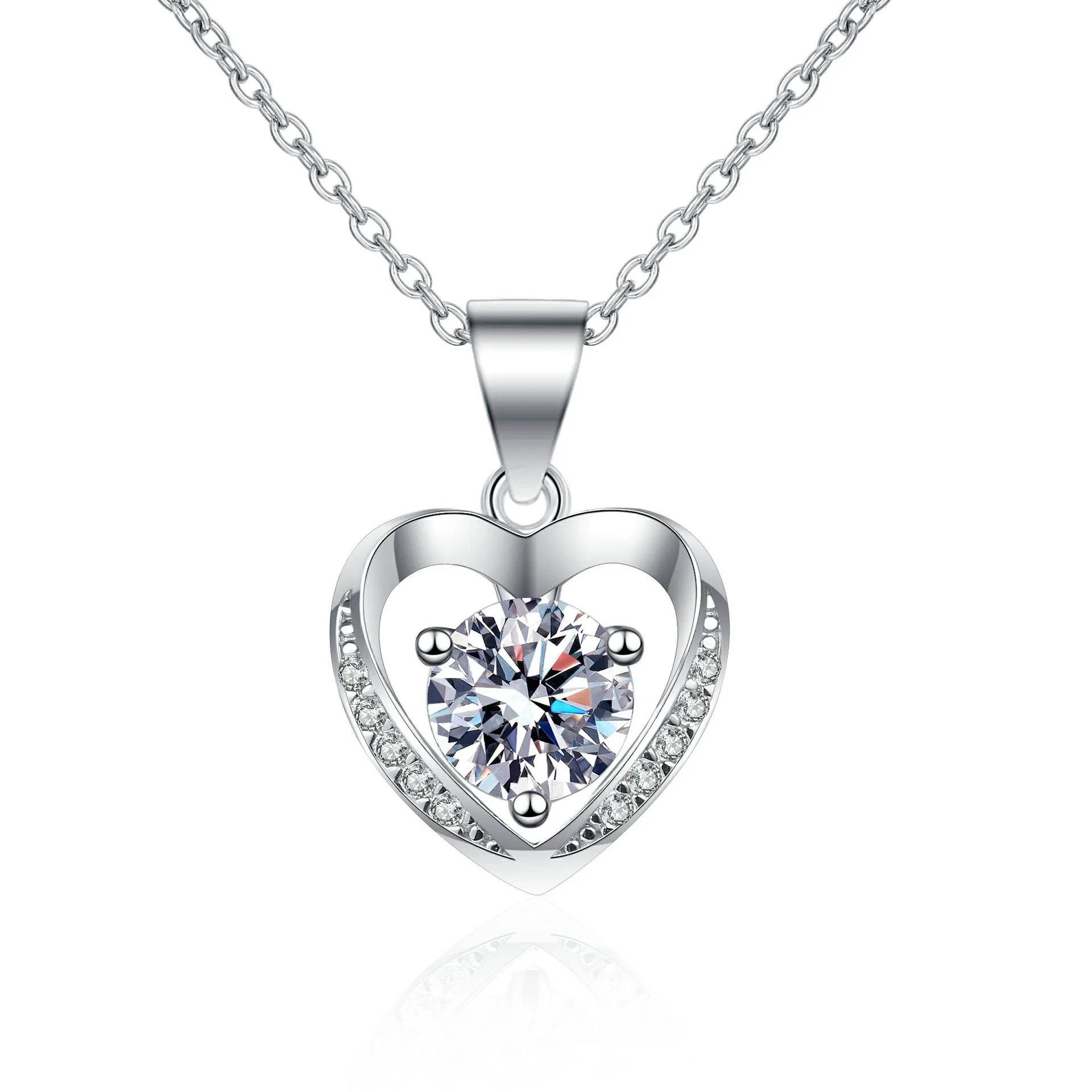 Ожерелье с кулоном из серебра пробы с муассанитом 1 карат, ожерелье с любовным сердцем, подарок на день матери, годовщину, день рождения для женщин и девушек