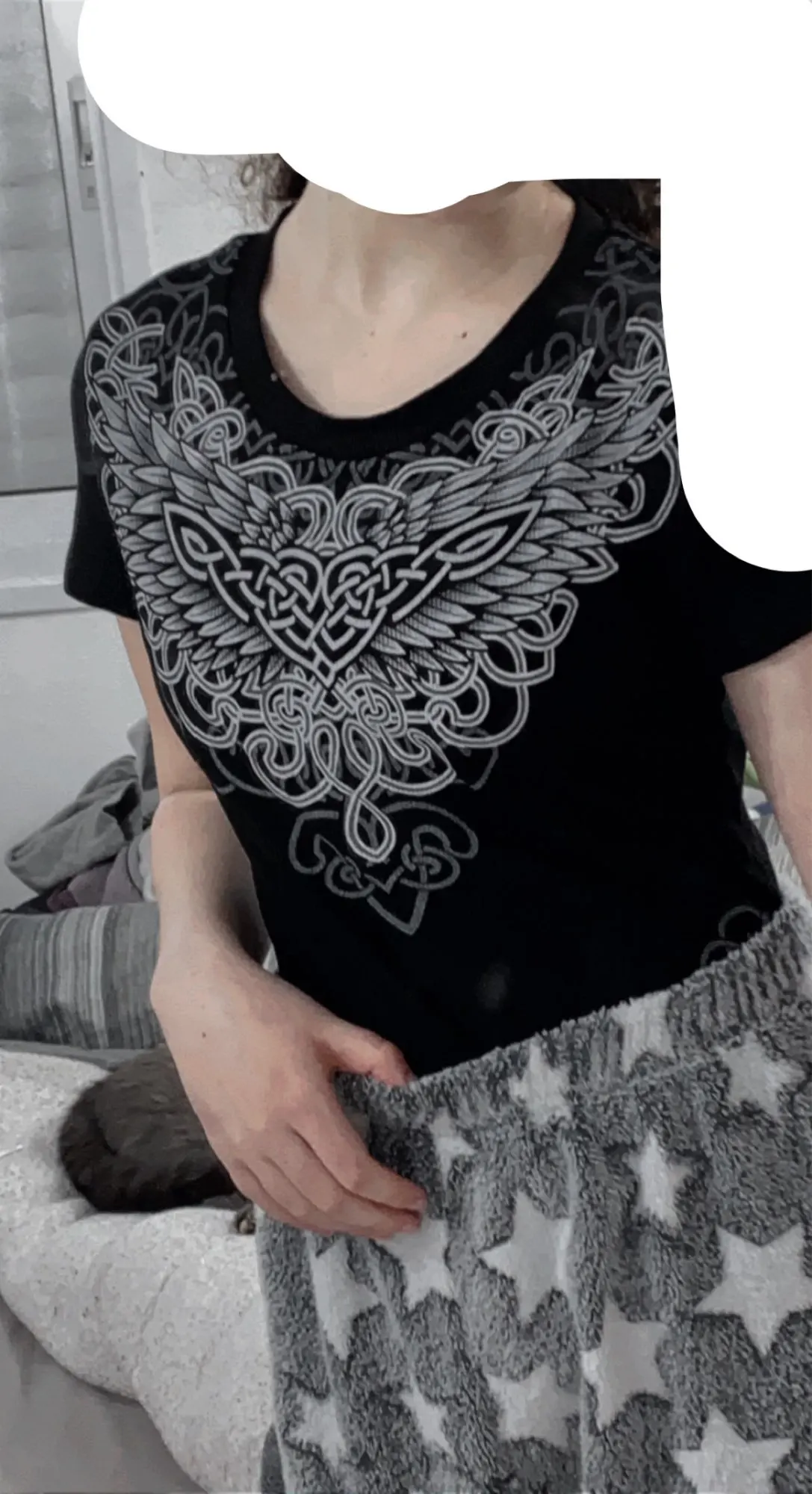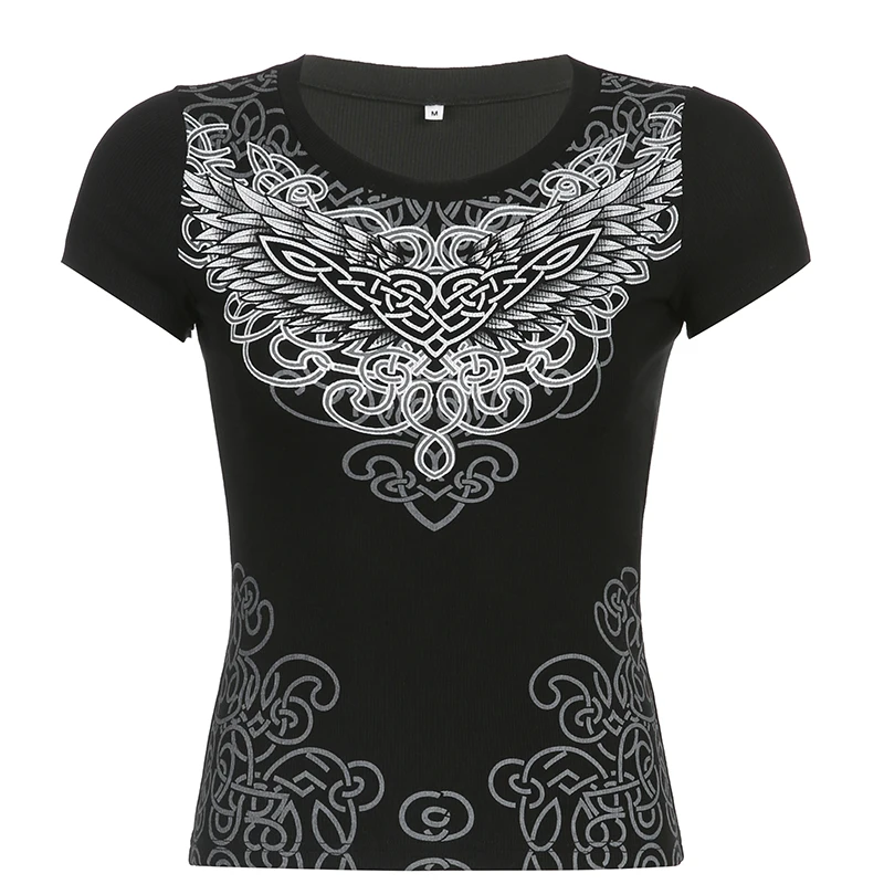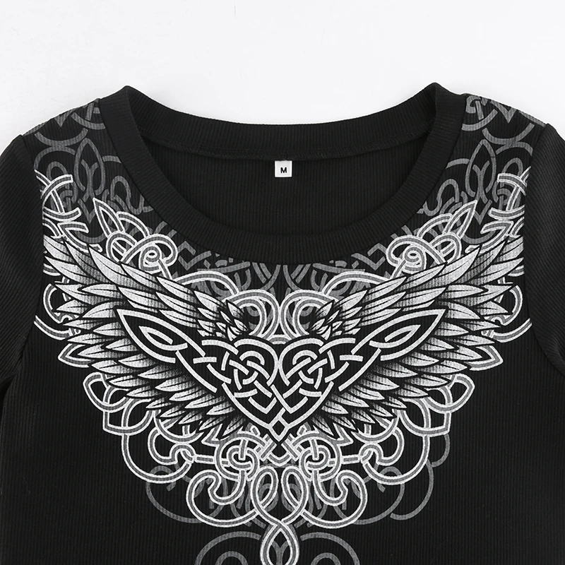 Осенняя черная футболка с винтажным принтом для E-girl в стиле Хара...