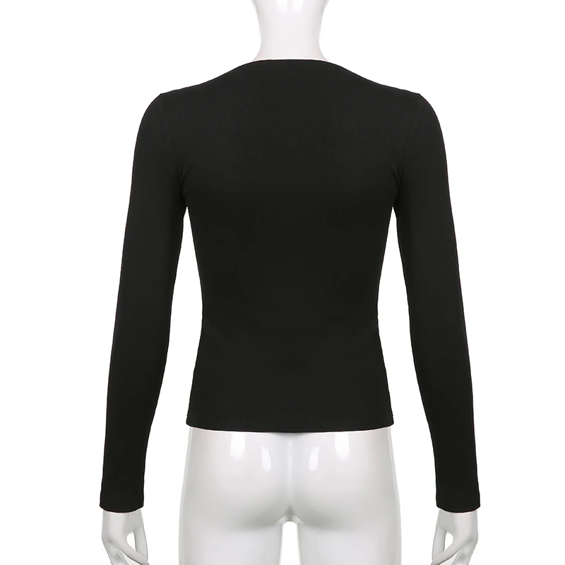 Женская футболка с длинным рукавом Y2K, черная Базовая Осенняя футб...
