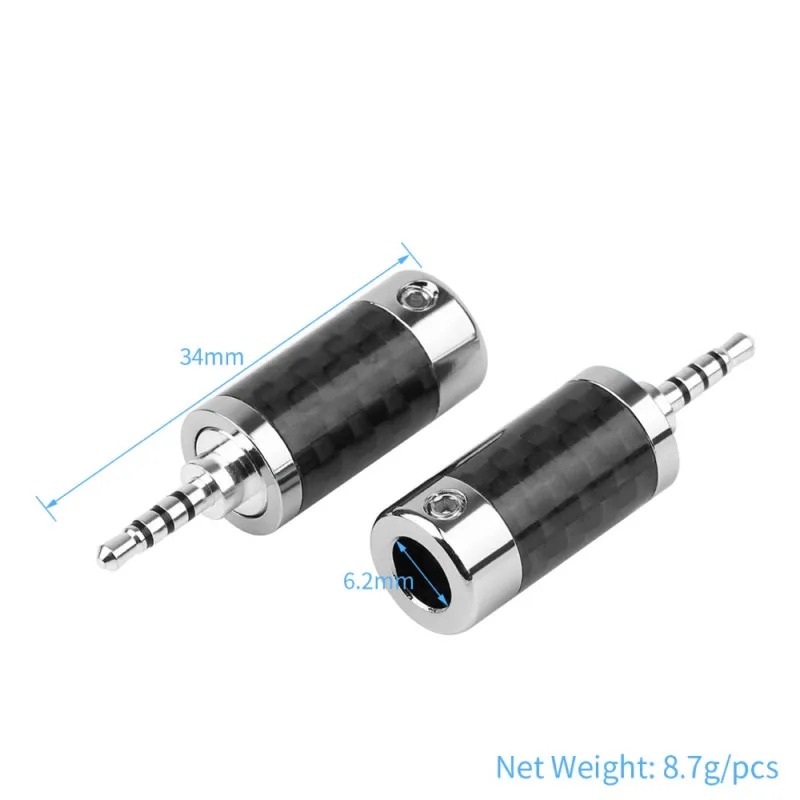 Адаптер для наушников 2,5 мм, 4-полюсный медный аудиоразъем с родиевым покрытием из углеродного волокна, 2,5 разъем AUX для наушников, соединители для проводов