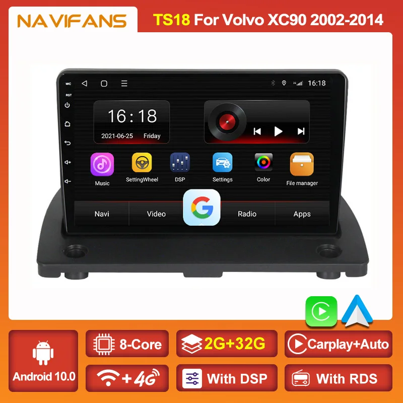 Автомагнитола 8 ядер, Android 11, 4G Lte DSP Carplay, мультимедийный проигрыватель для Volvo XC90 2004 -2014