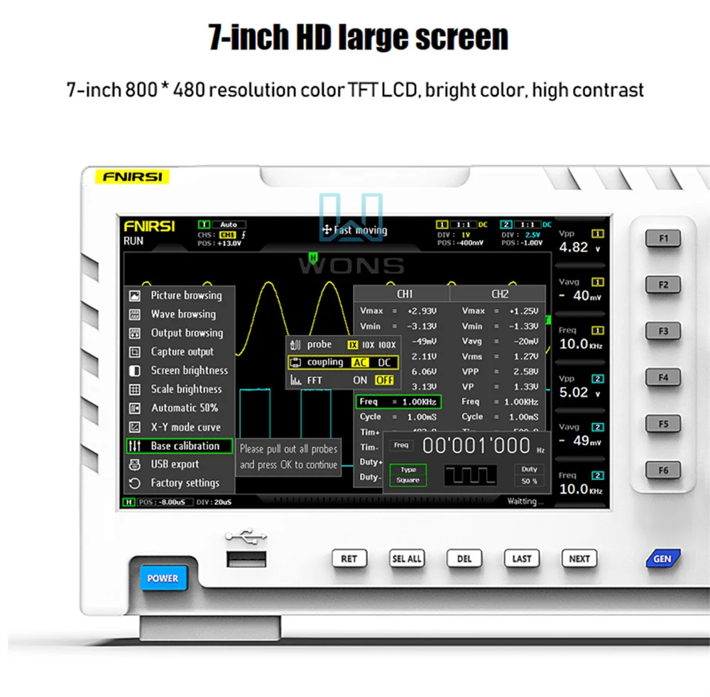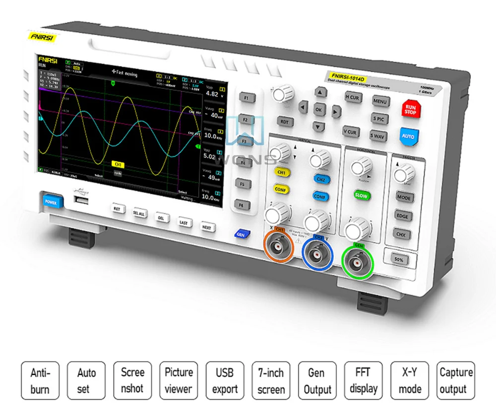Цифровой осциллограф FNIRSI 1014D, двухканальный генератор входного сигнала, цифровой осциллограф 1GSa/s, частота дискретизации 1 Гб